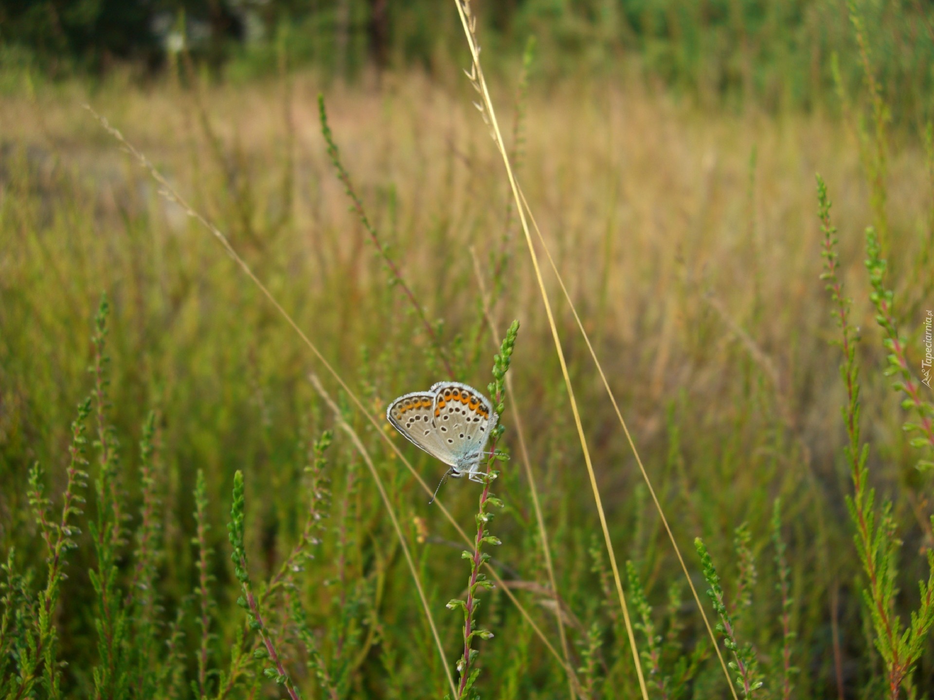 Edytor tapety: Modraszek, Motyl, Źdźbła, Trawy