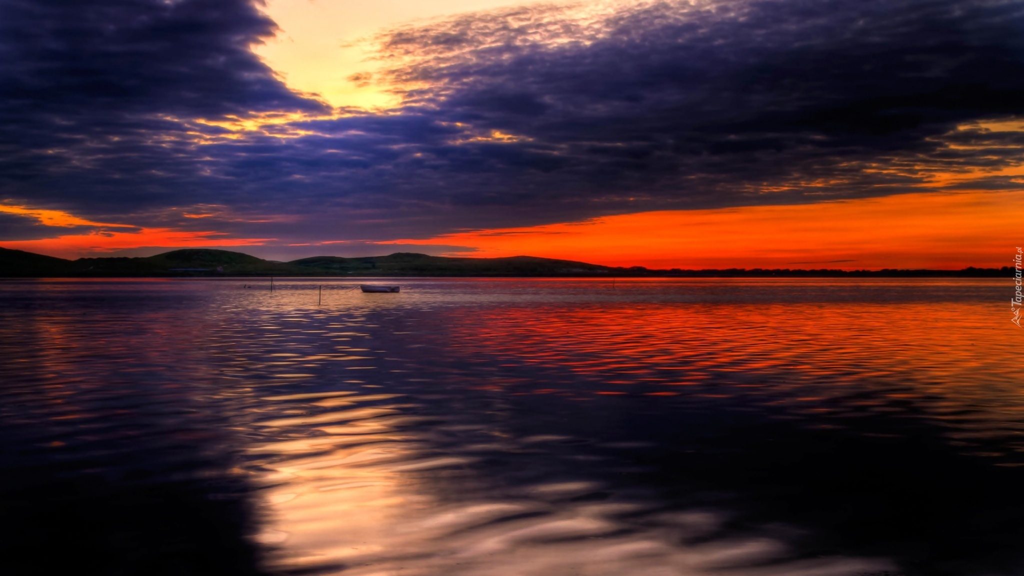 Edytor tapety: Morze, Zachód, Słońca, Chmury, Wieczór, Odbicie
