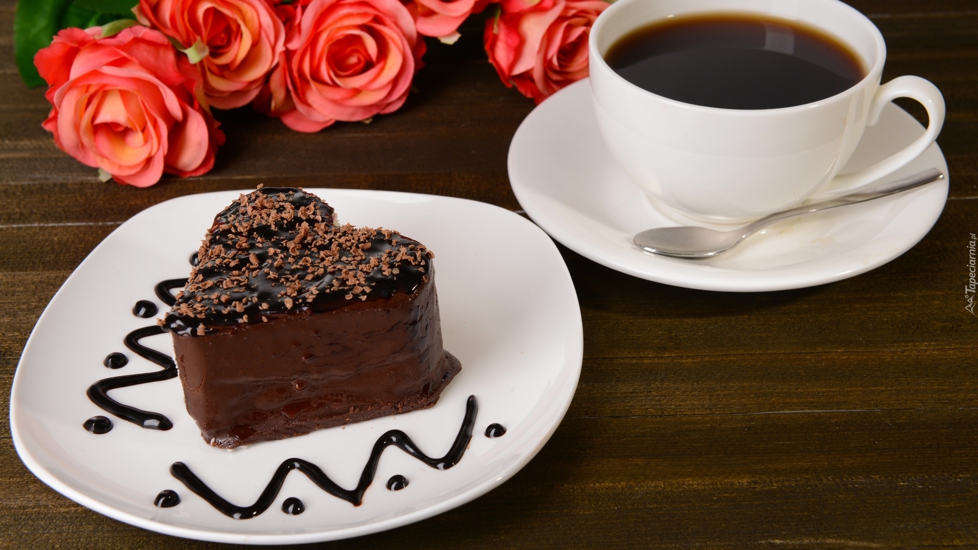 Edytor tapety: Kawa, Deser, Ciastko, Tortowe, Kwiaty, Róże