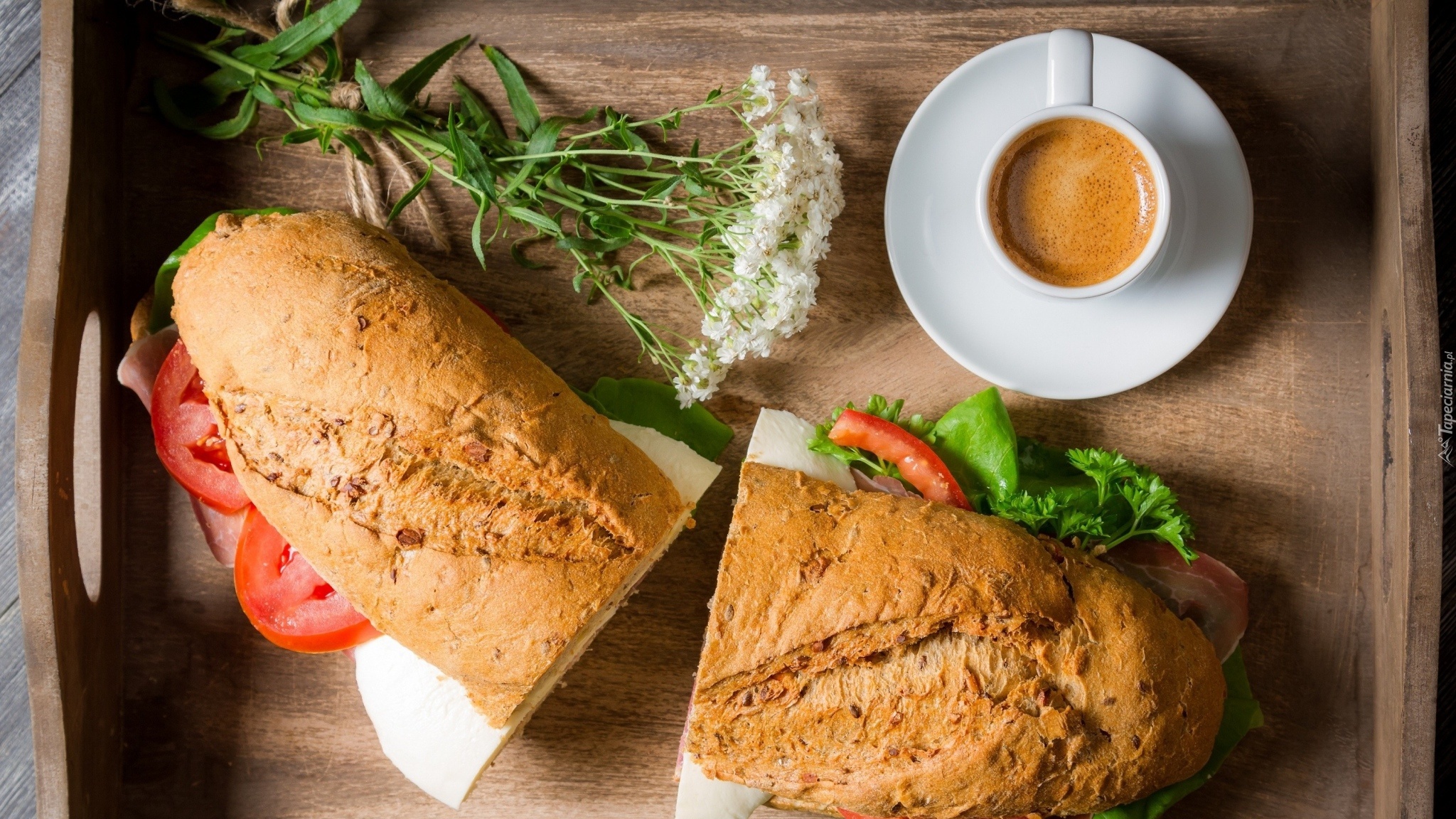 Edytor tapety: Kanapki, Kawa, Filiżanka, Kwiaty