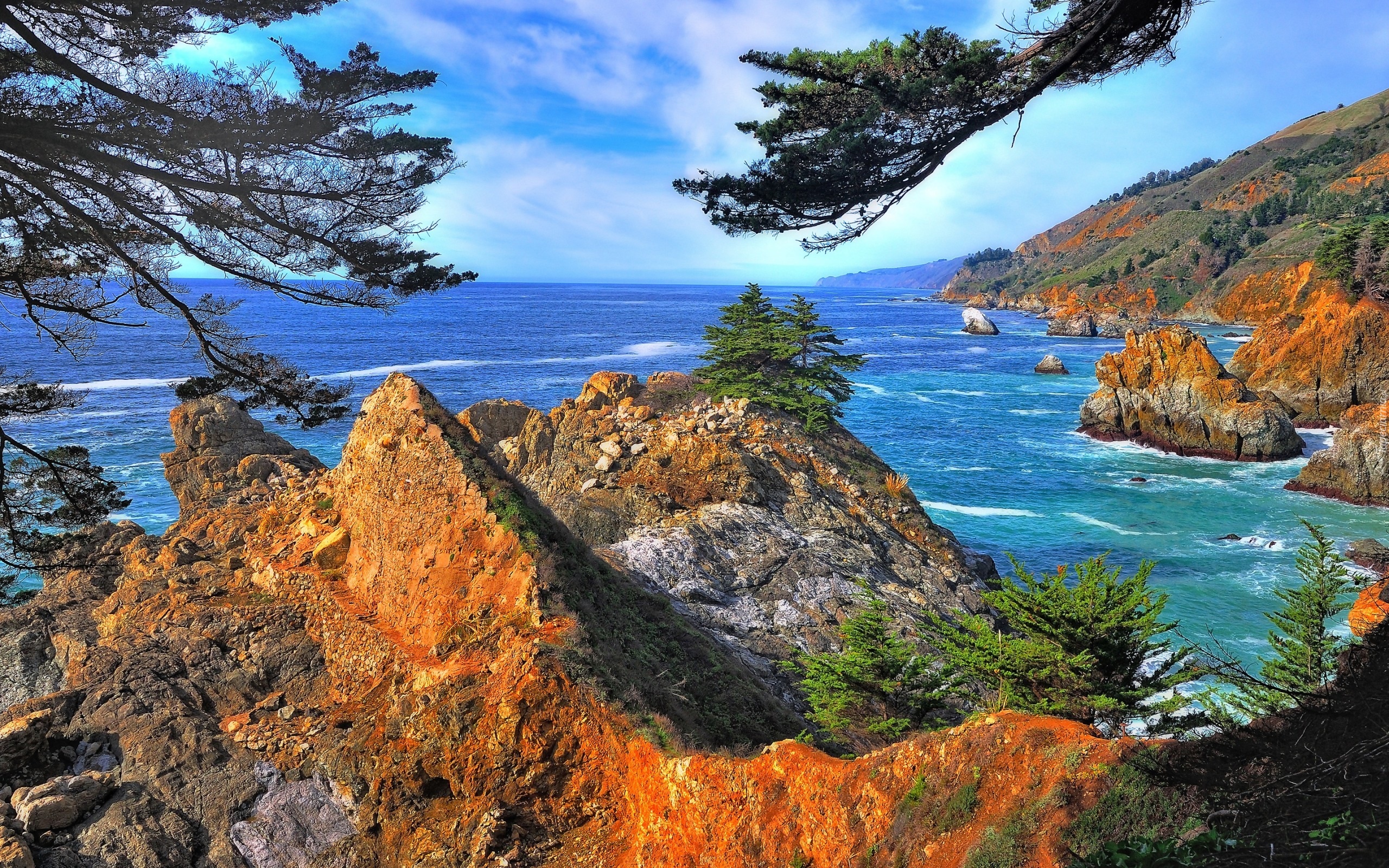 Edytor tapety: Morze, Skały, Gałęzie, Drzew