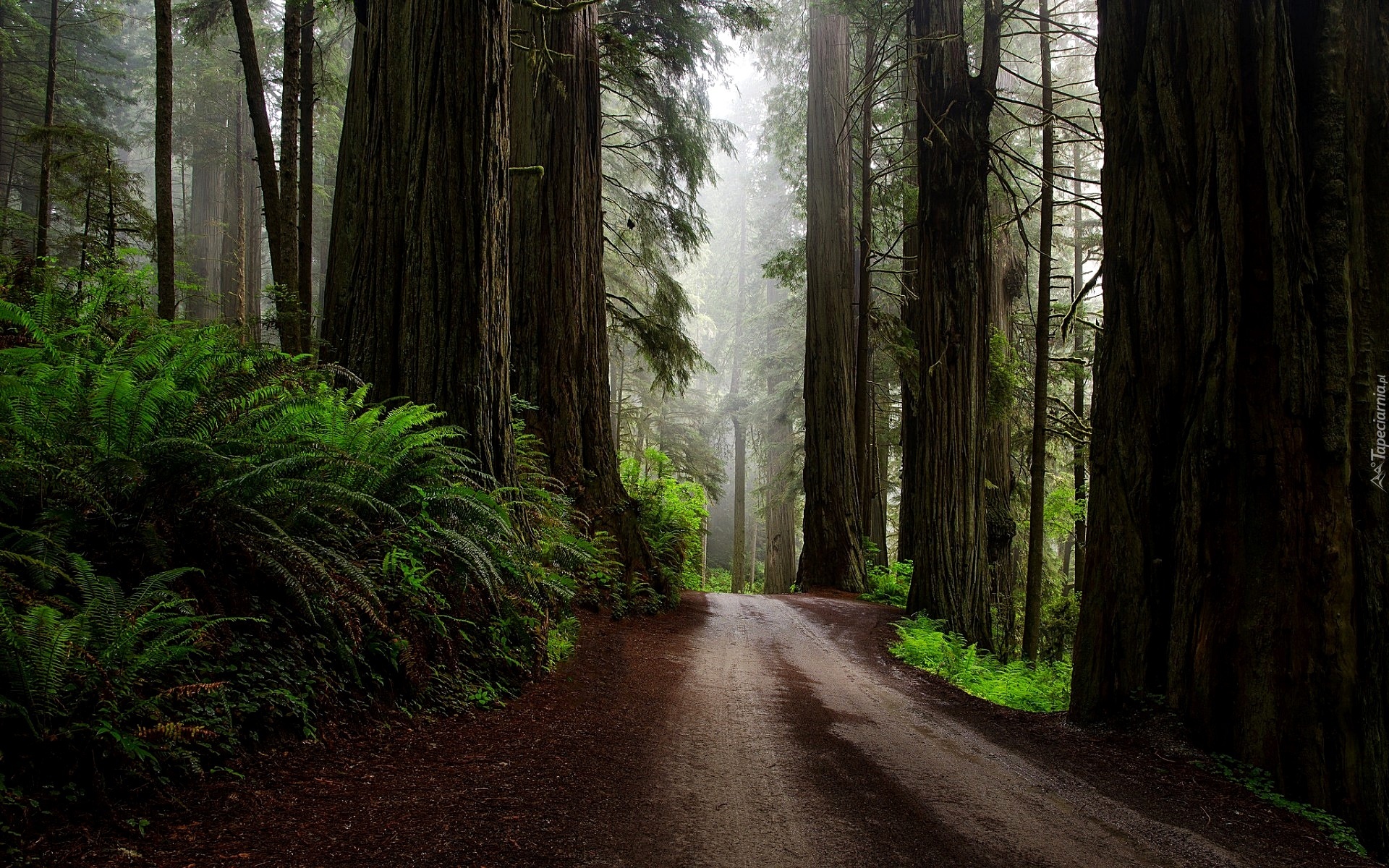 Edytor tapety: Droga, Las, Drzewa, Sekwoje
