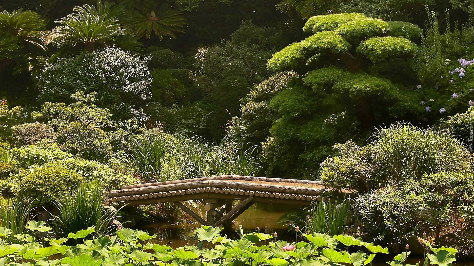 Edytor tapety: Ogród, Japoński, Staw, Drewniany, Mostek