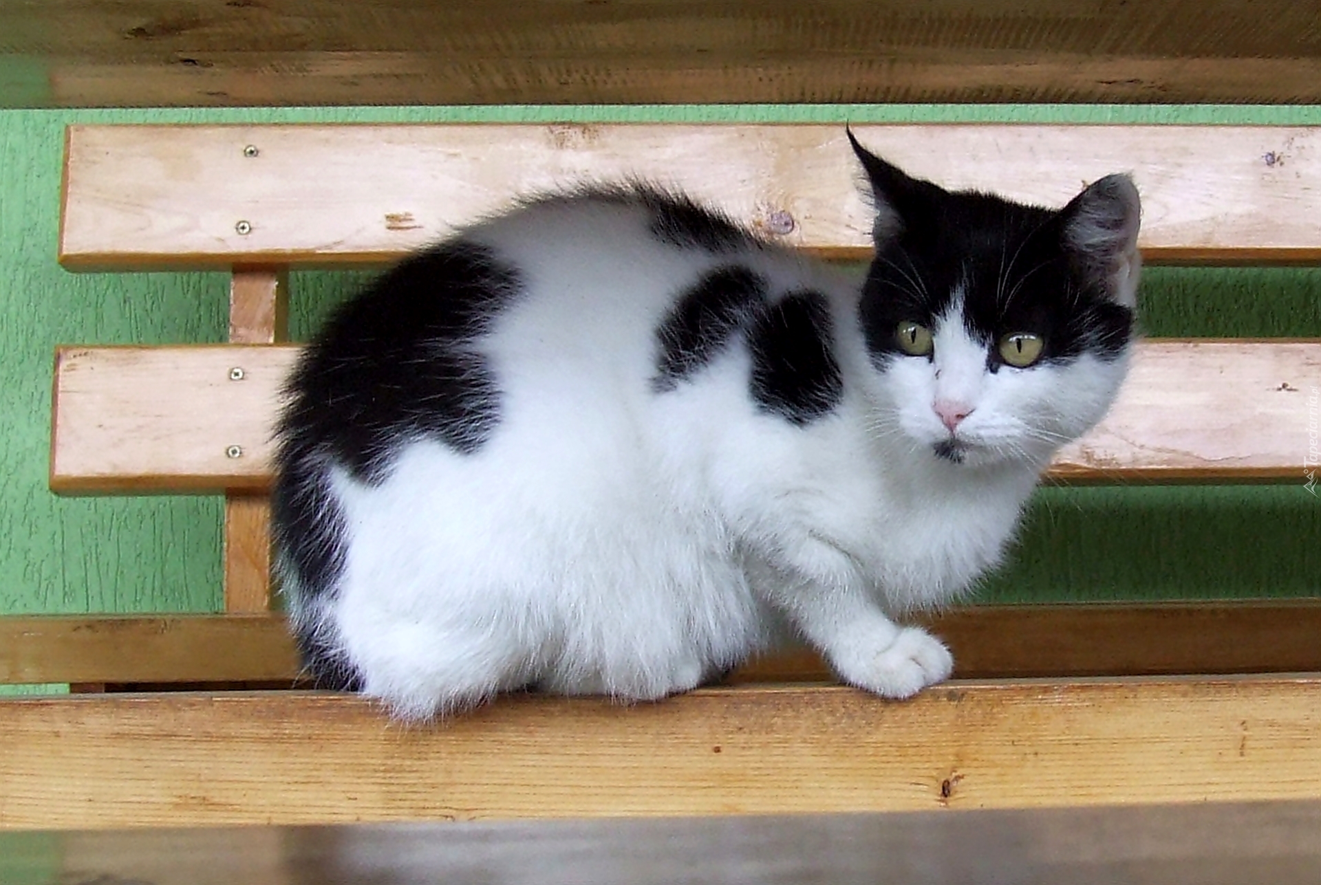 Edytor tapety: Czarno, Biały, Kotek, Ławka