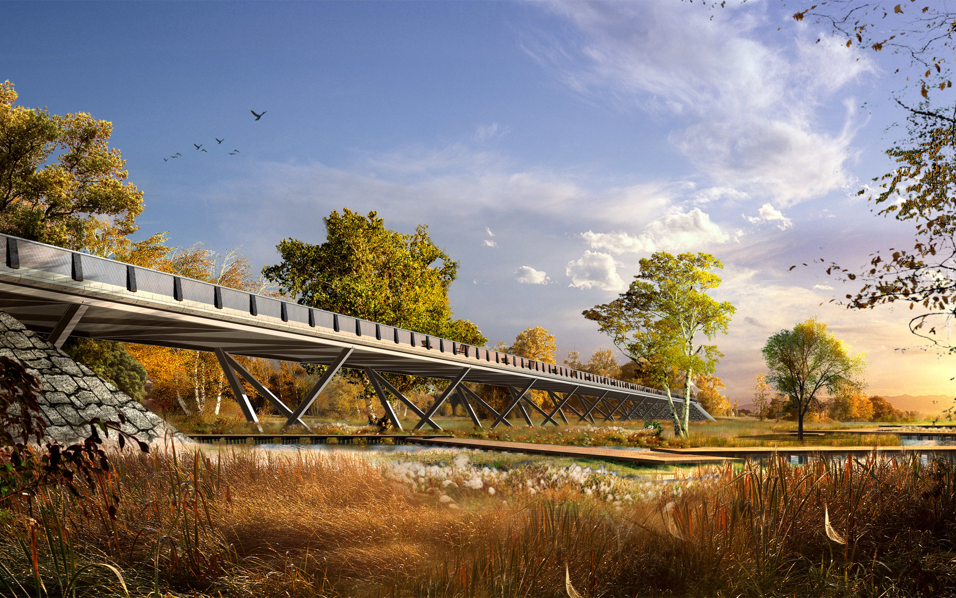 Edytor tapety: Rzeka, Most, Drzewa, Trawy