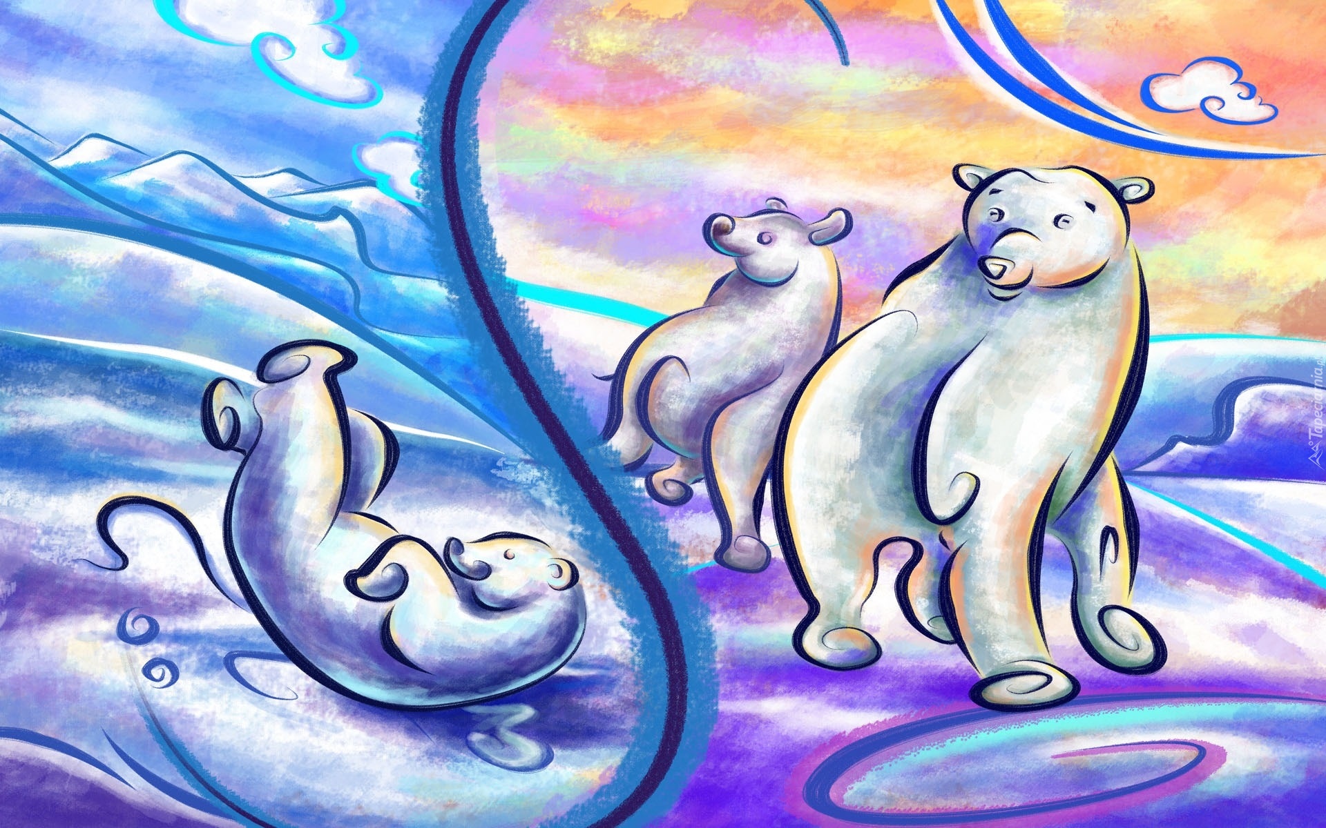 Edytor tapety: Malarstwo, Obraz, Ręcznie, Malowane, Misie, Niedźwiedzie, Polarne, Zabawa