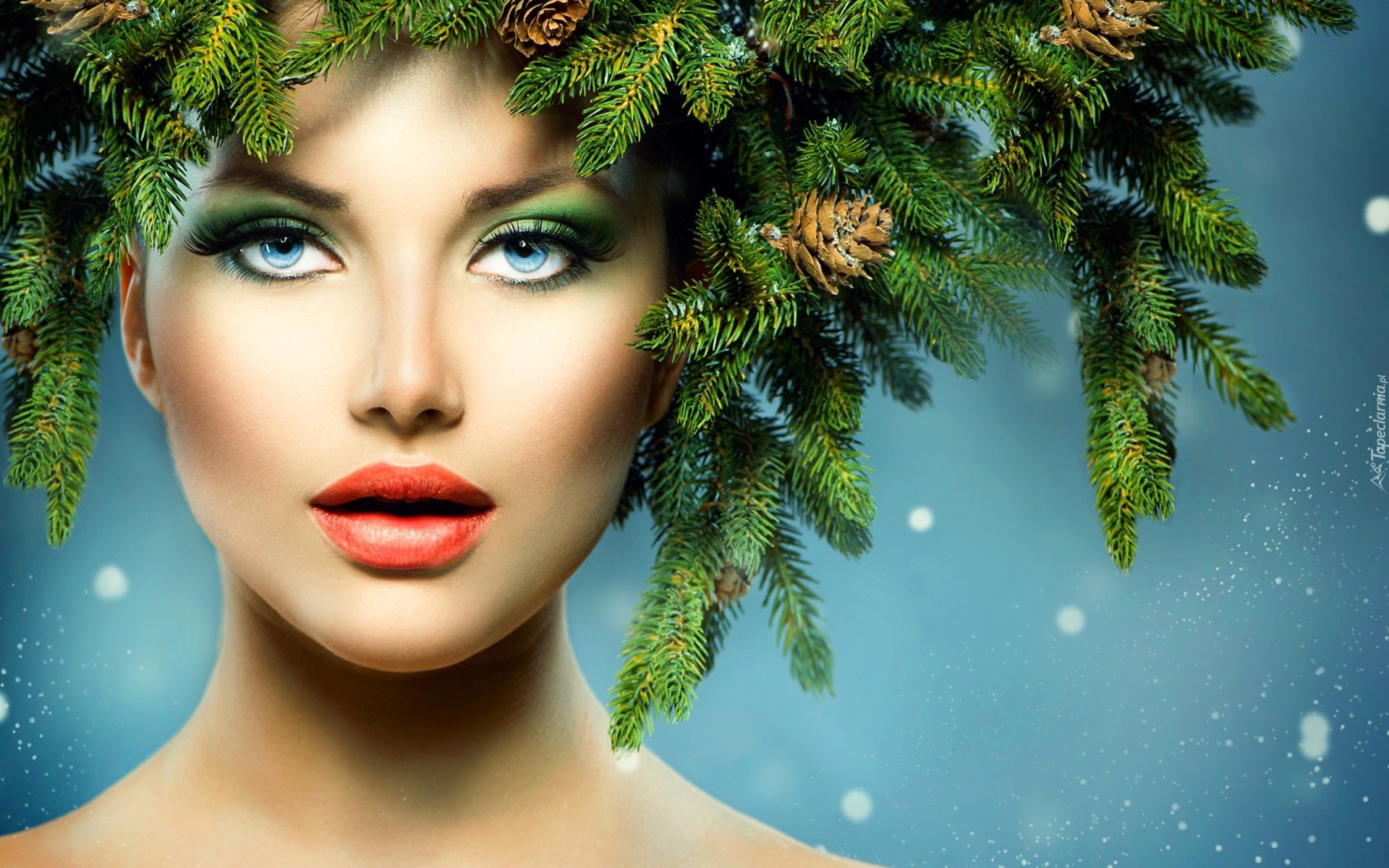 Edytor tapety: Kobieta, Makijaż, Gałązki, Świerkowe
