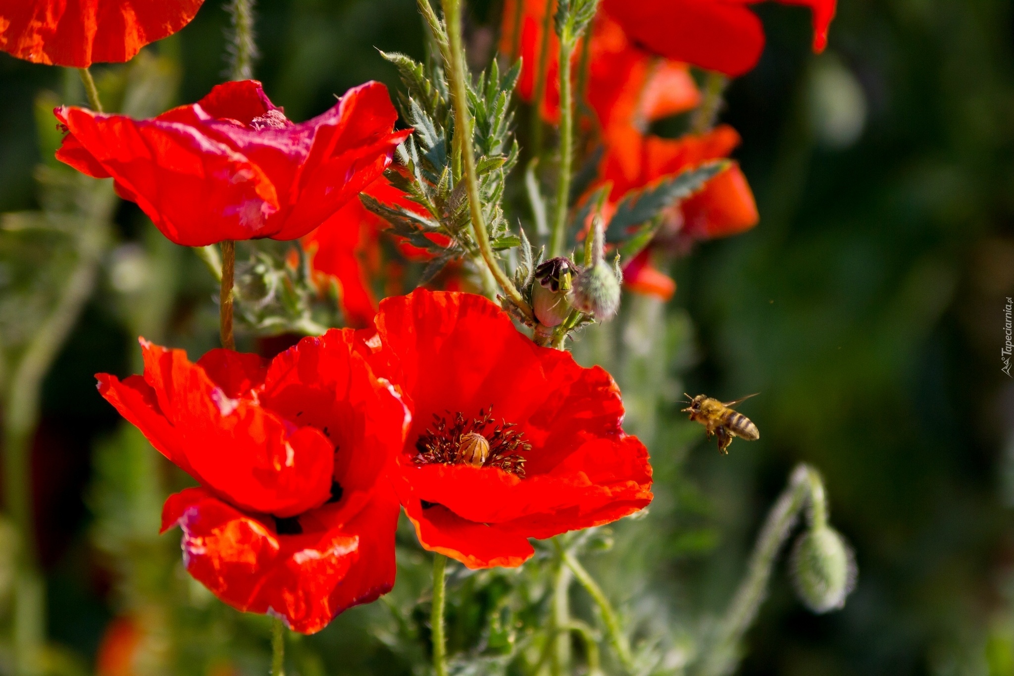Edytor tapety: Czerwone, Maki, Pszczoła