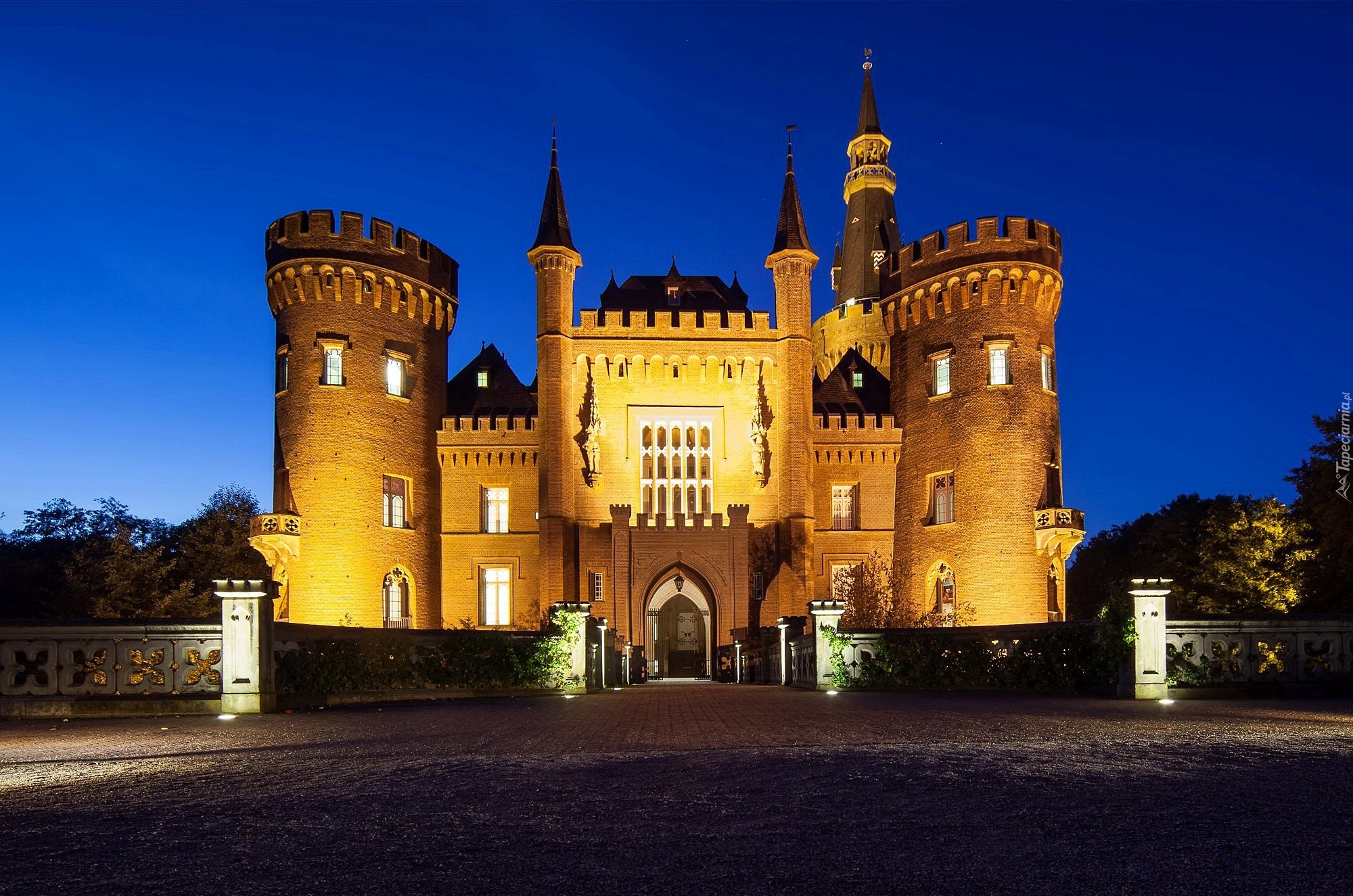 Edytor tapety: Oświetlony, Zamek Moyland, Miejscowość Kleve, Nardenia Północna - Westfalia, Niemcy