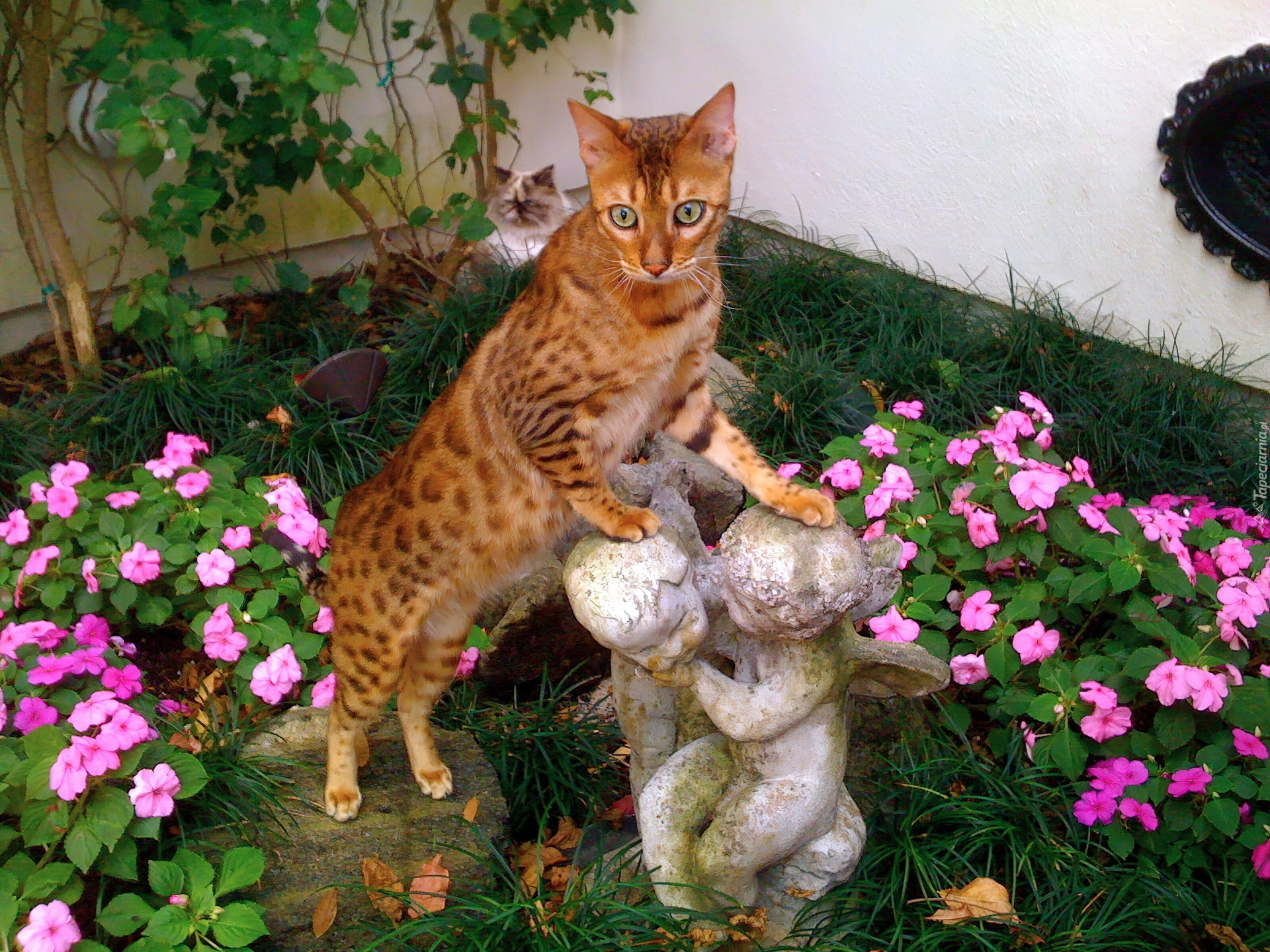 Edytor tapety: Kotek, Bengalski, Ogród, Kwiaty