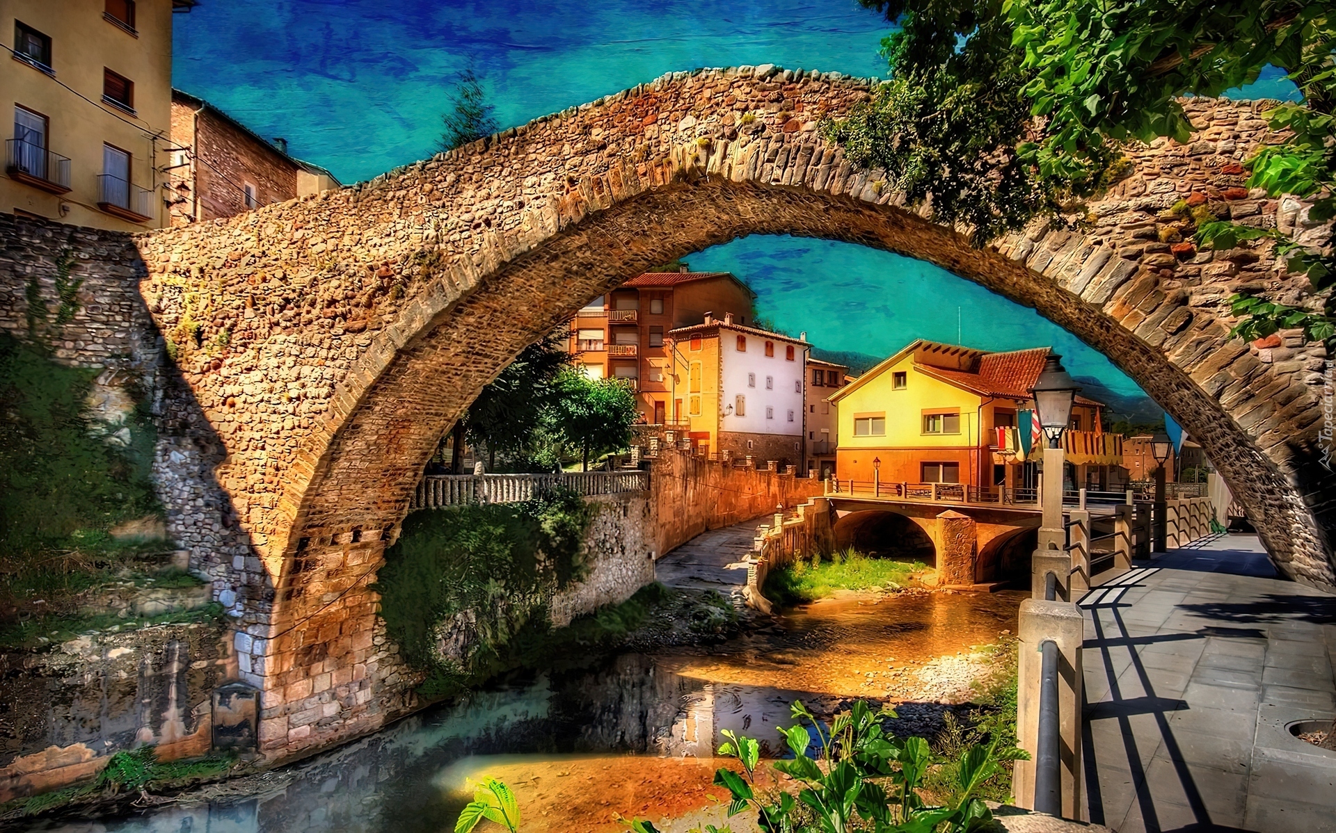 Edytor tapety: Miasto, Mosty, Domy, Rzeka