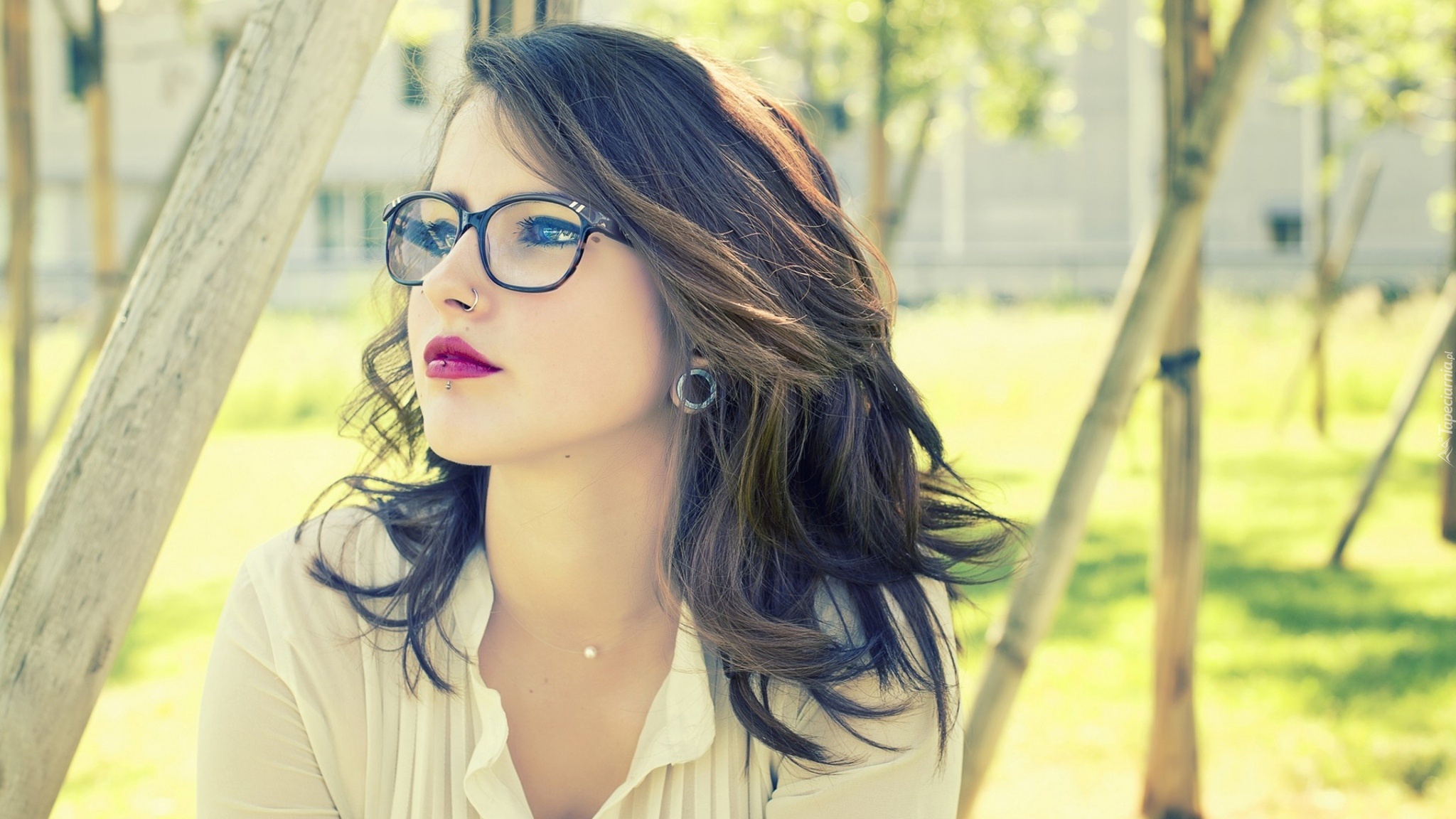 Edytor tapety: Kobieta, Brunetka, Makijaż, Kolczyk, Okulary