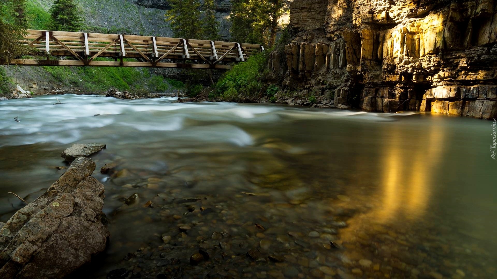 Edytor tapety: Rzeka, Drewniany, Most, Skały