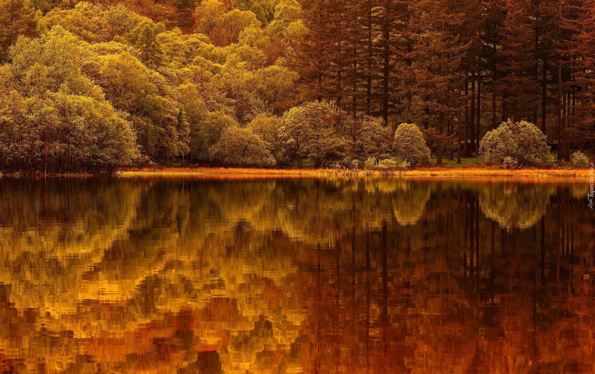 Edytor tapety: Jesien, Odbicie, Park, Staw