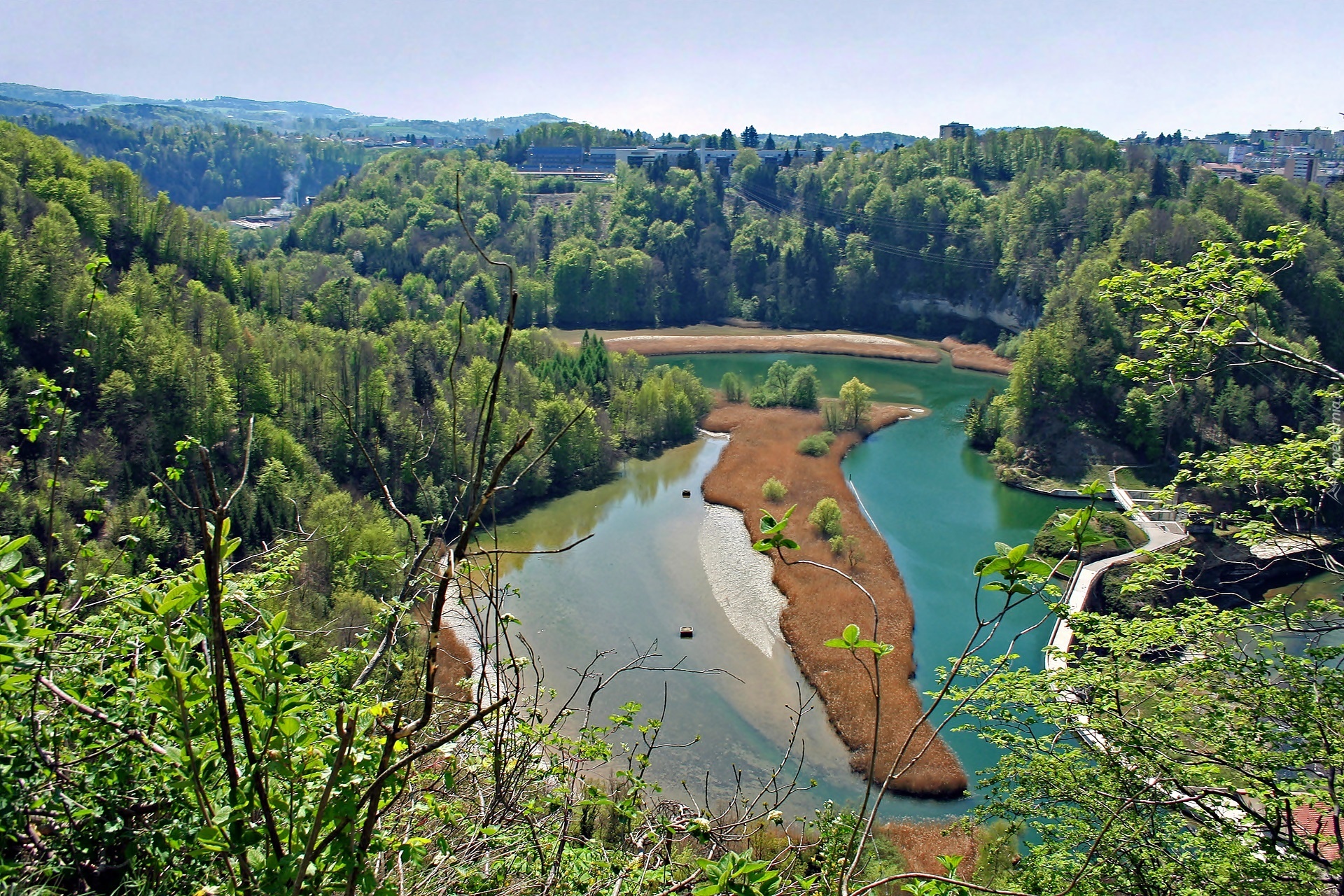 Edytor tapety: Rzeka, Sarine, Lasy, Fryburg, Szwajcaria