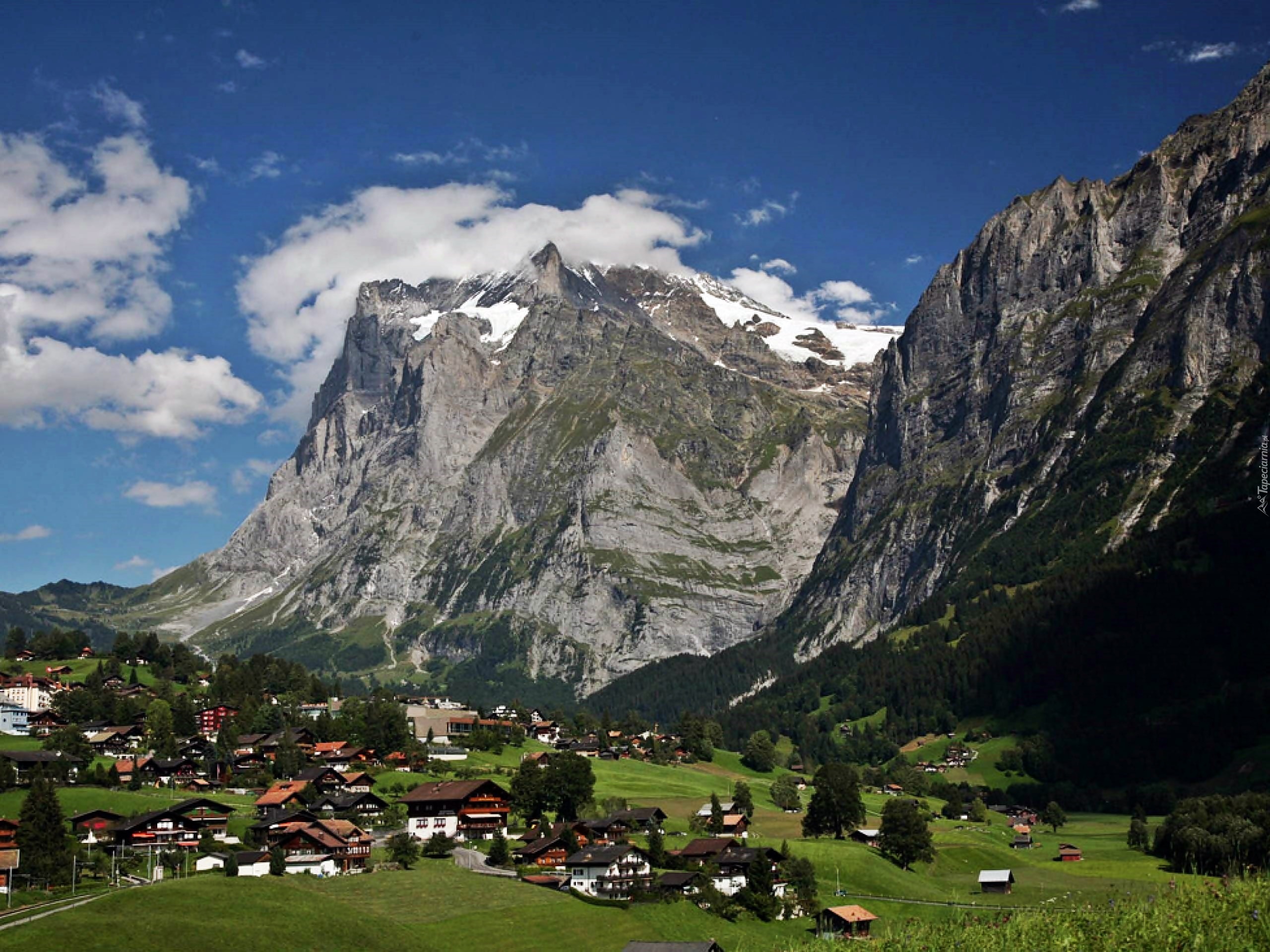 Edytor tapety: Góry, Alpy, Łąki, Chmury, Wioska, Grindelwald