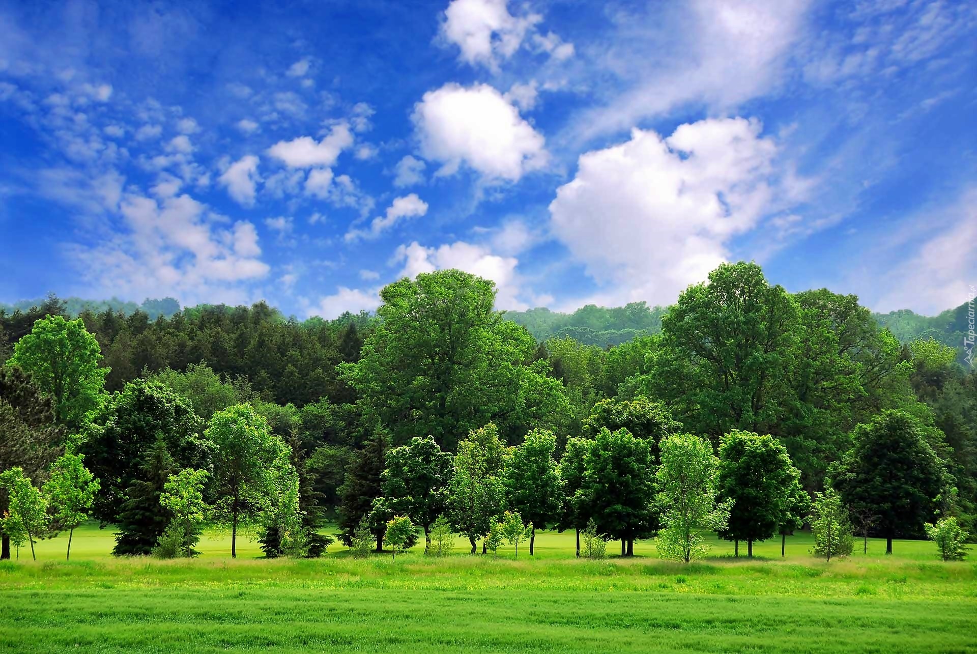 Edytor tapety: Las, Łąka, Chmury, Lato