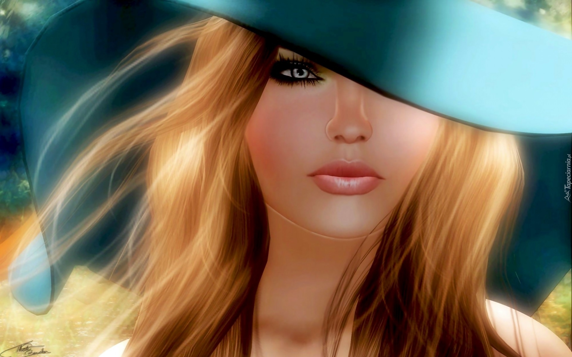 Edytor tapety: Kobieta, Zielony, Kapelusz