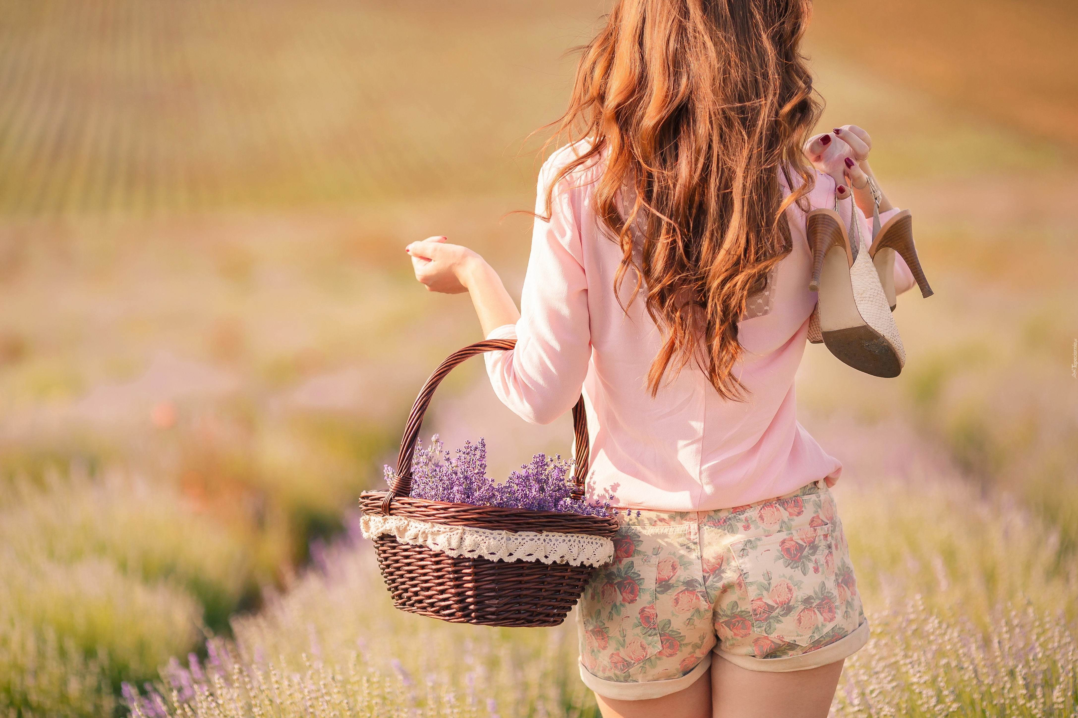 Edytor tapety: Brunetka, Łąka, Koszyk, Lawenda, Buty