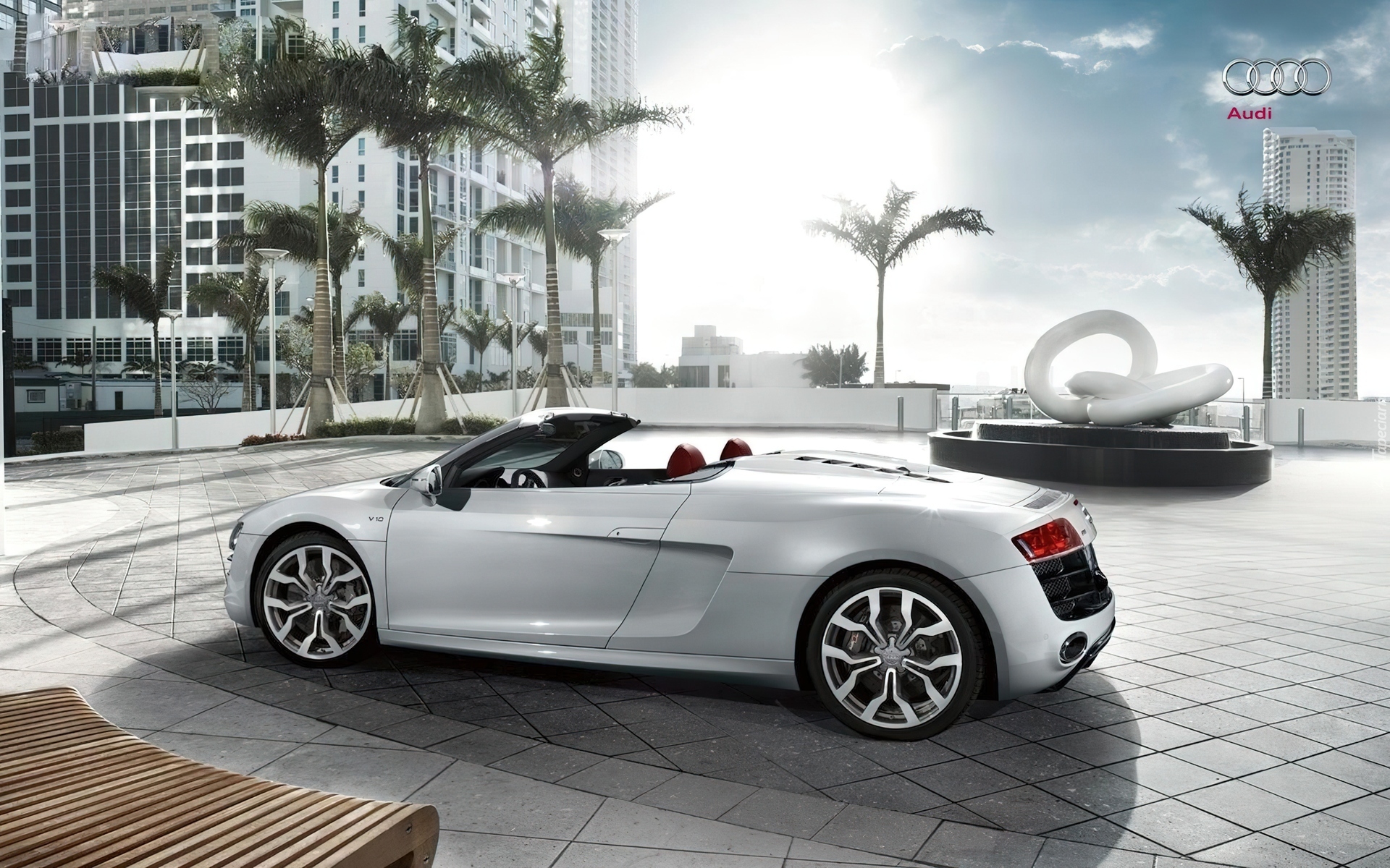Edytor tapety: srebrne, Audi R8, cabriolet