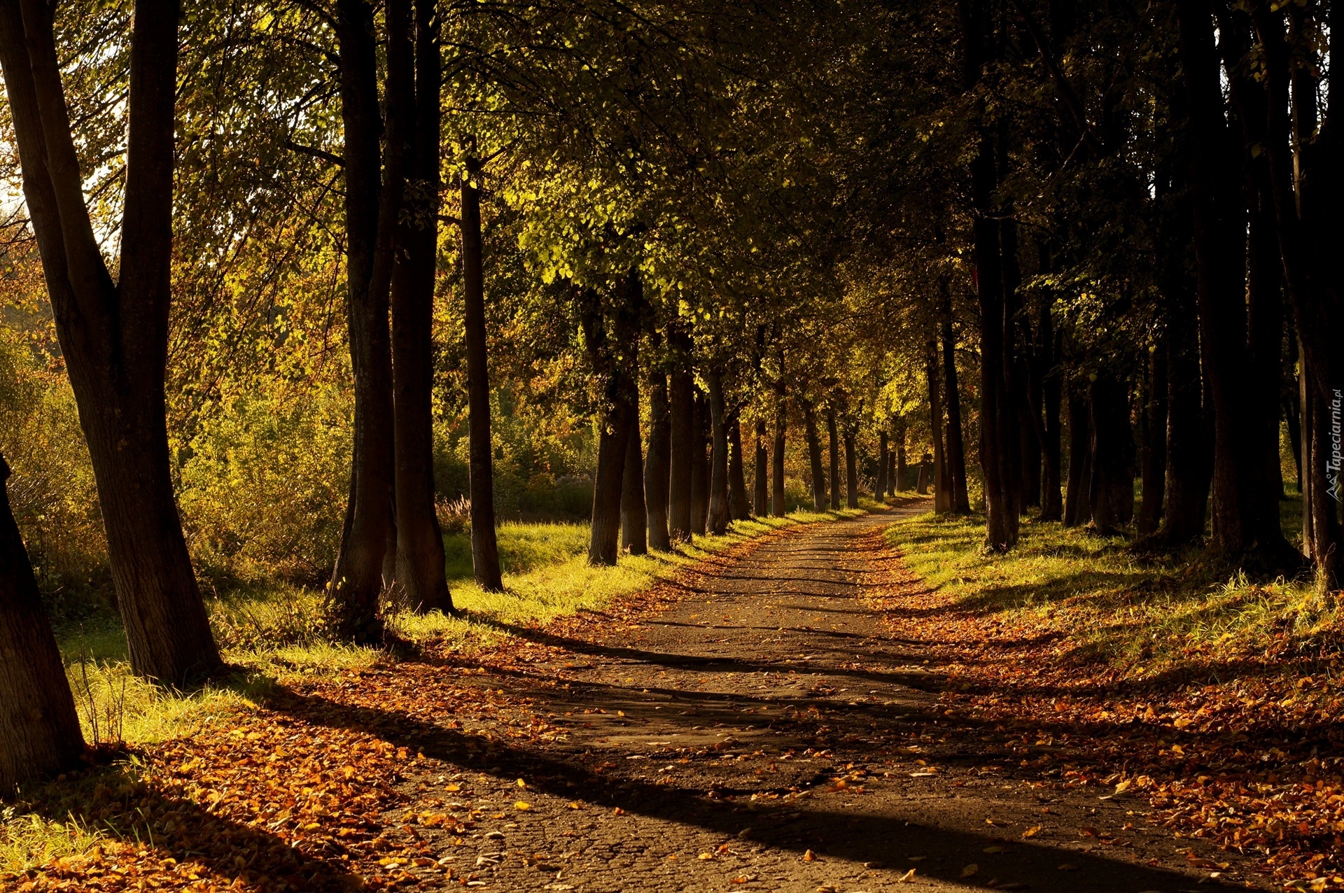 Edytor tapety: Droga, Przebijające, Światło, Park