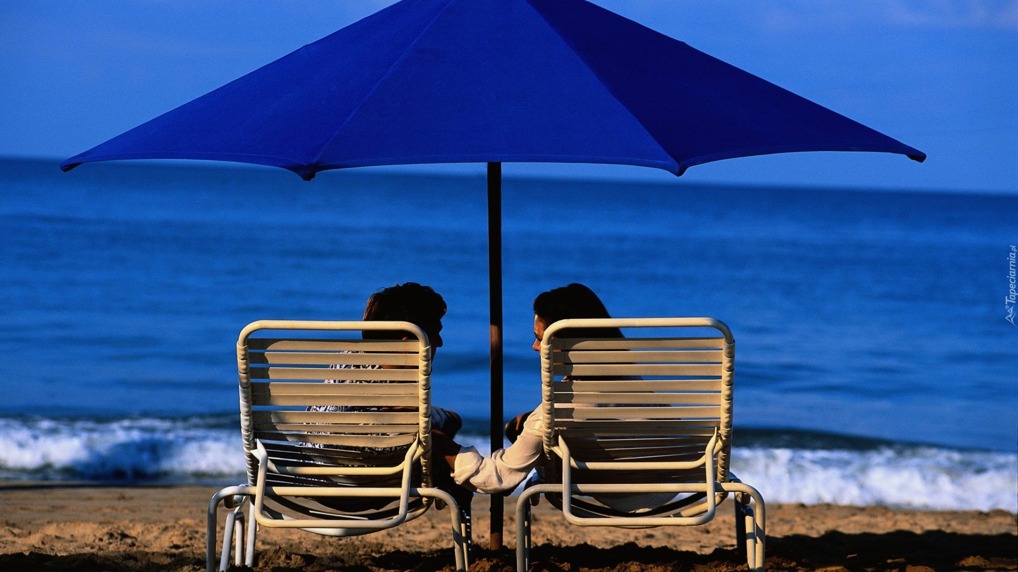 Edytor tapety: Para, Morze, Leżaki, Parasol, Wakacje