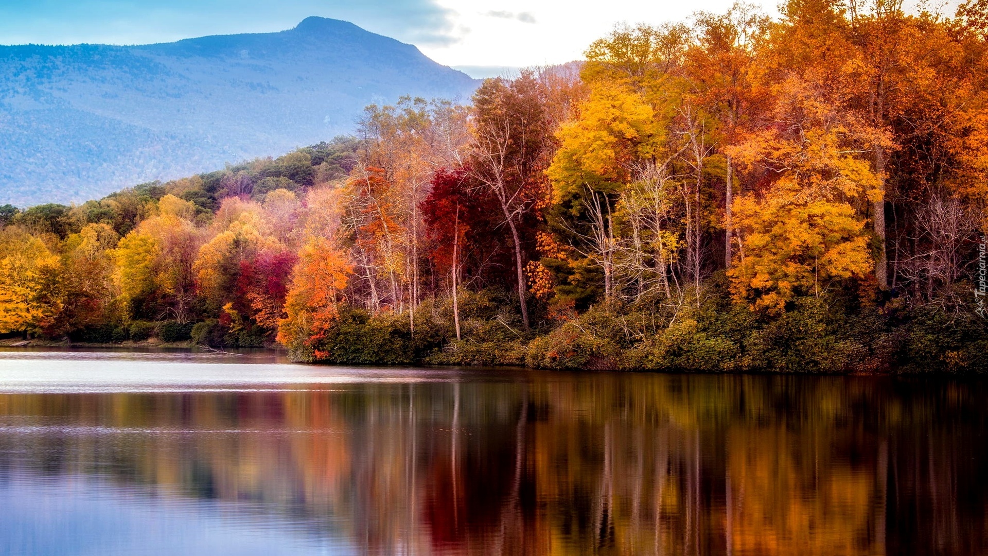 Edytor tapety: Jesień, Las, Jezioro, Odbicie, Góry