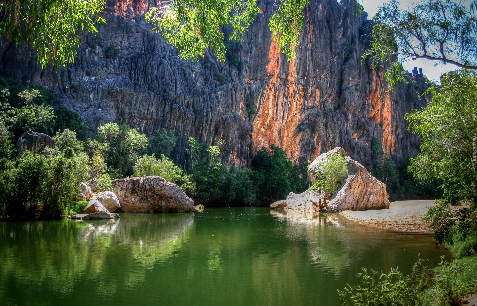 Edytor tapety: Skały, Jezioro, Gałęzie, Drzew