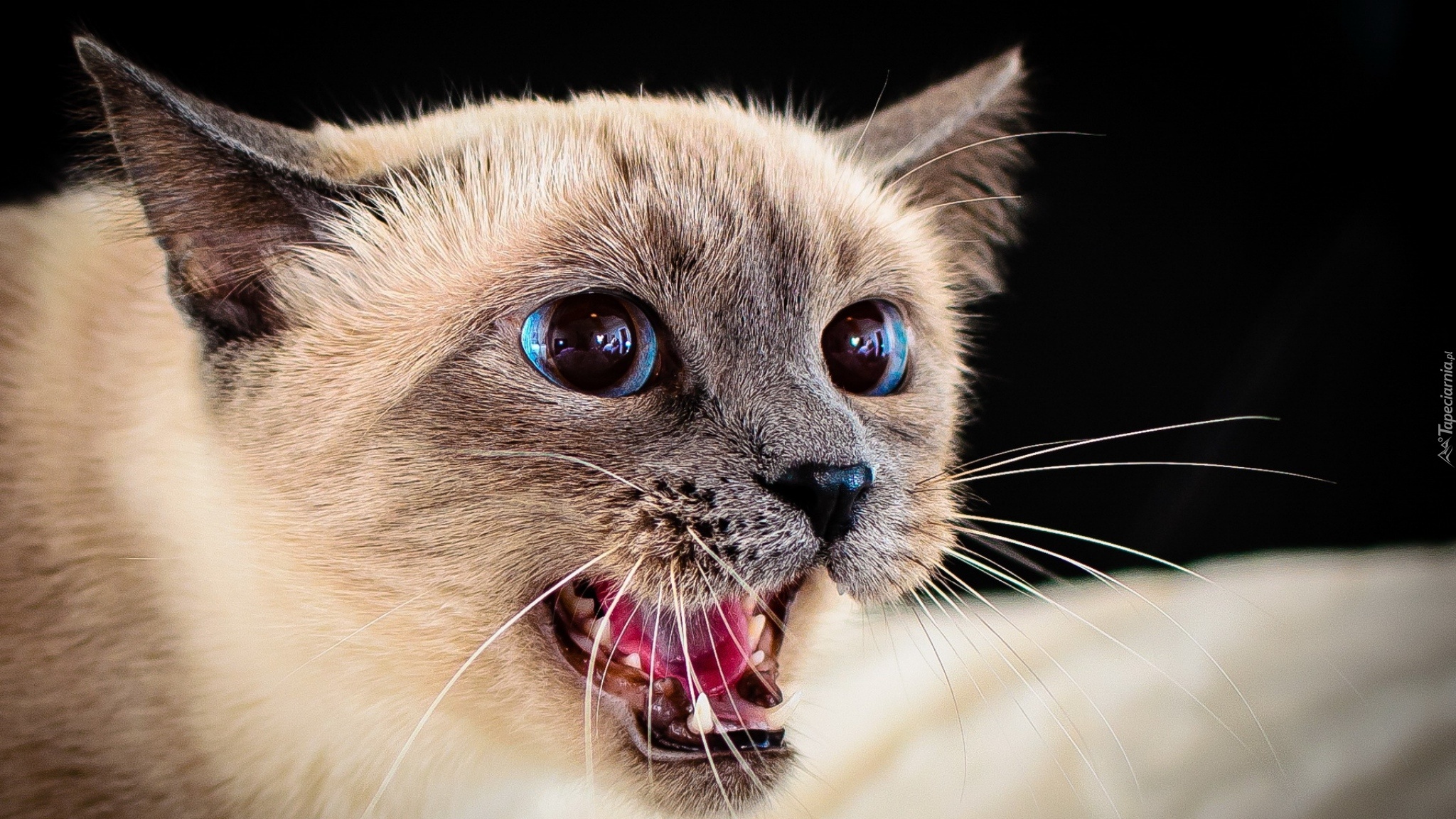 Edytor tapety: Kot, Syjamski, Niebieskie, Oczy, Otwarta, Paszcza