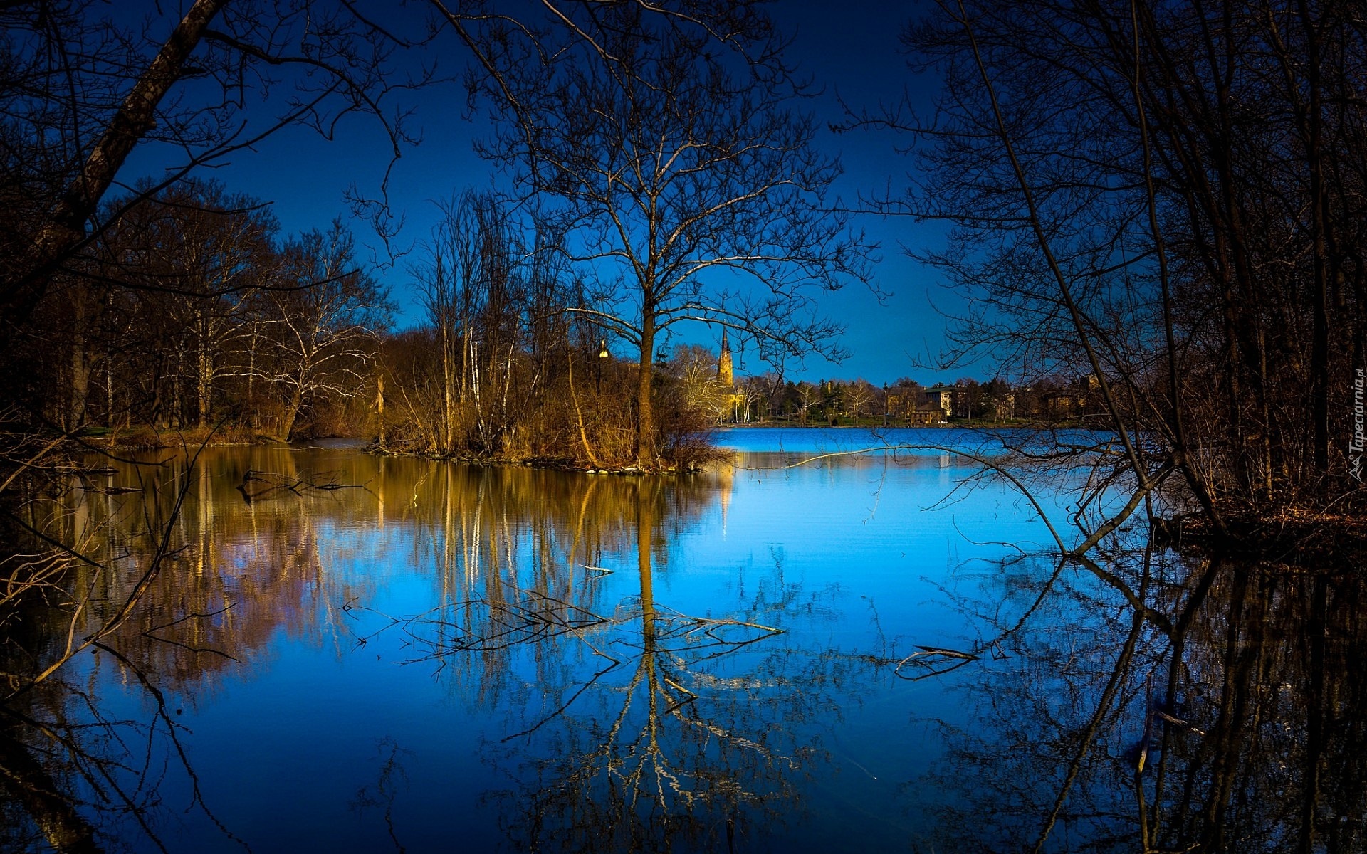 Edytor tapety: Rzeka, Drzewa, Zmrok