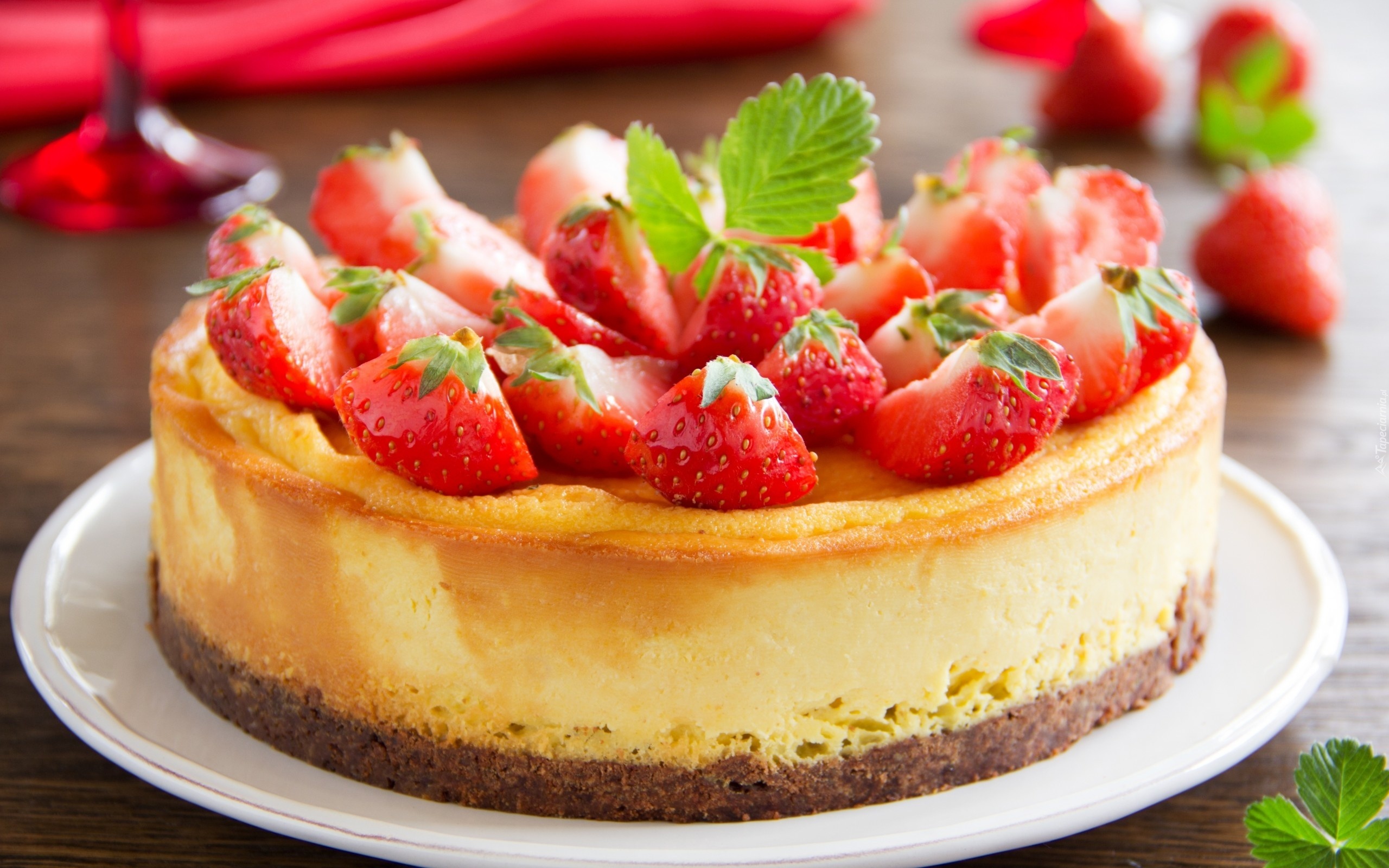 Edytor tapety: Ciasto, Sernik, Truskawki