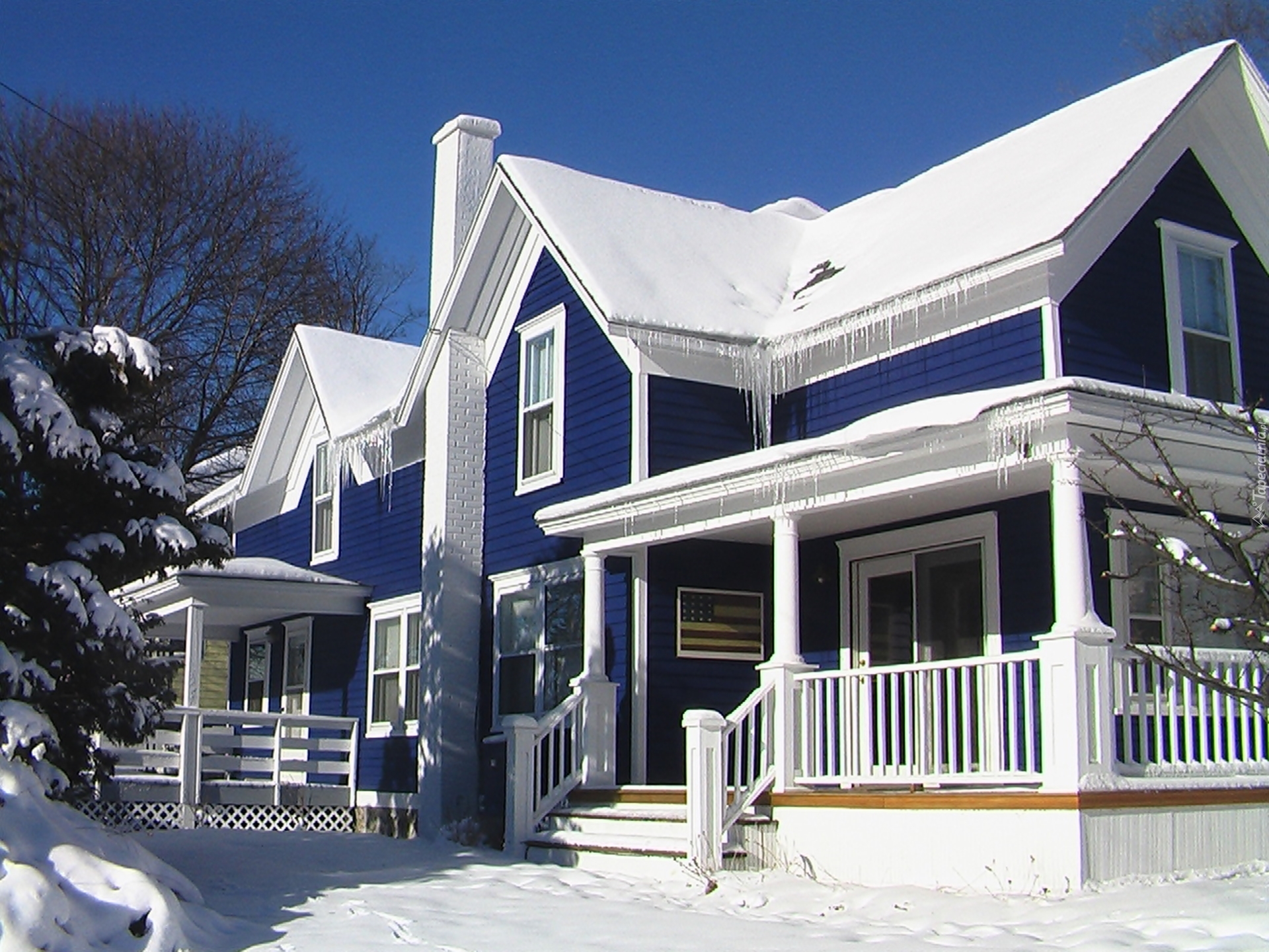 Edytor tapety: Dom, Drzewa, Przebijające, Światło, Zima