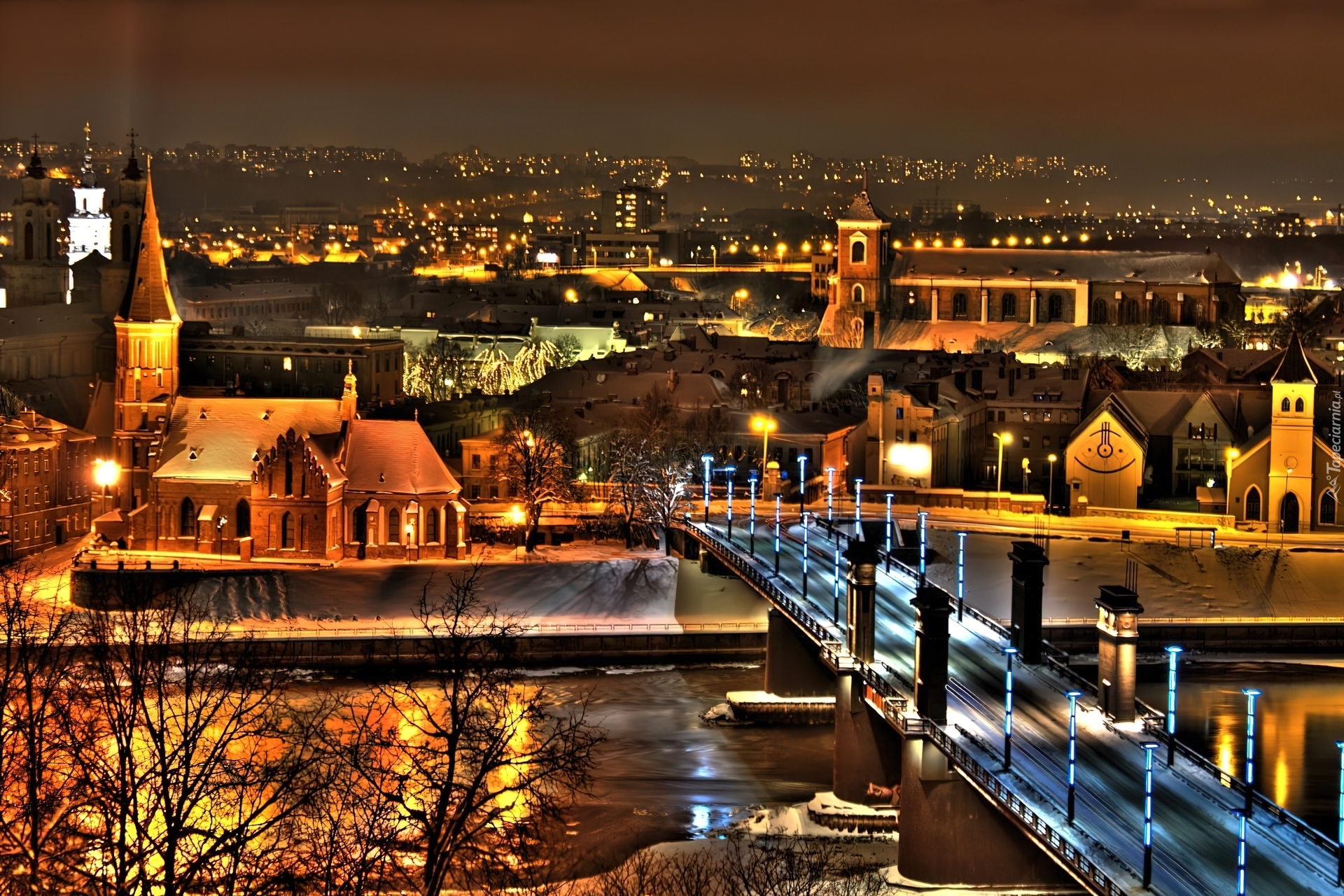 Edytor tapety: Litwa, Kowno, Miasto, Noc, Most