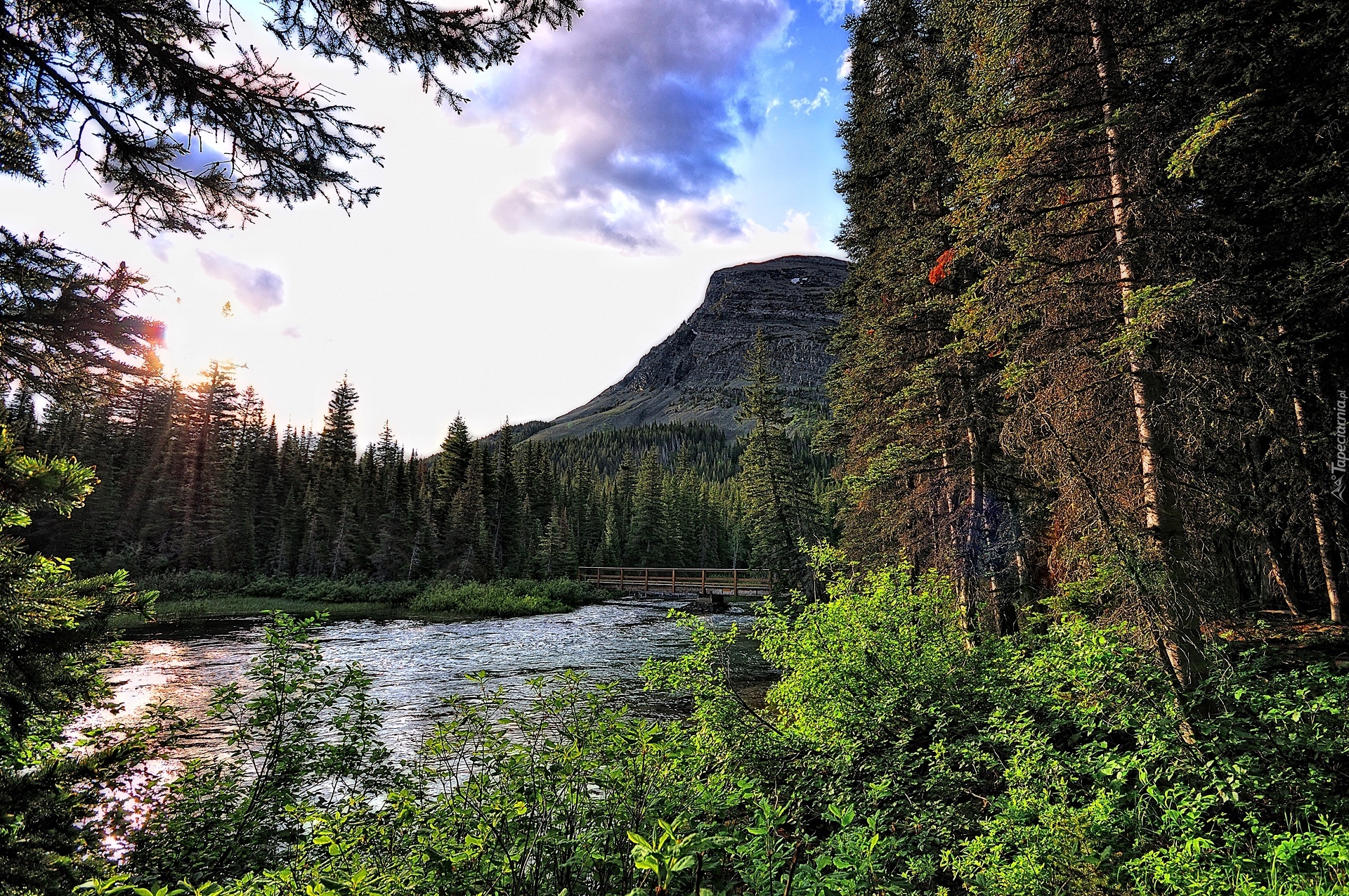 Edytor tapety: Las, Rzeka, Góry, Mostek