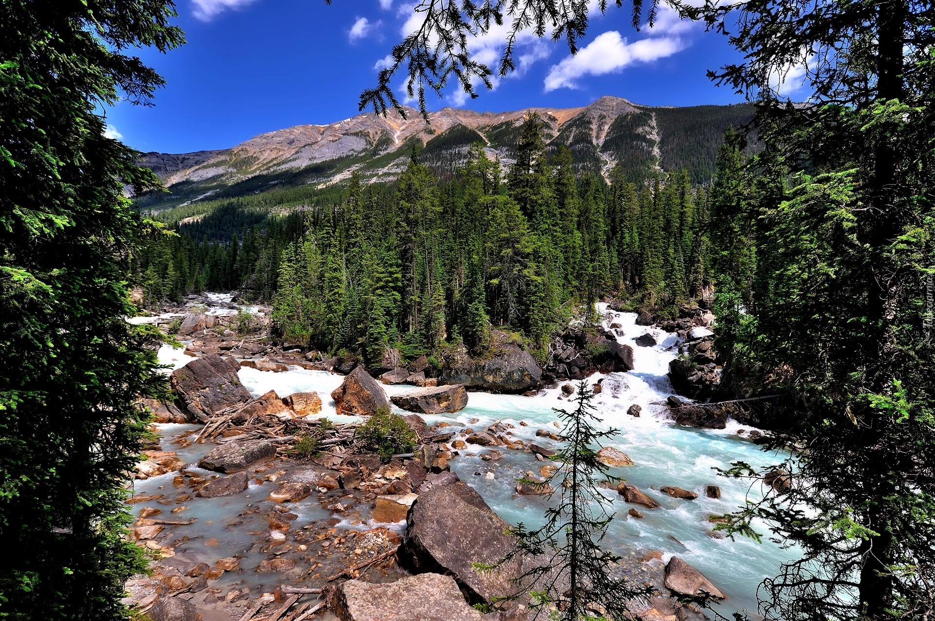 Edytor tapety: Góry, Świerki, Strumyk, Kamienie