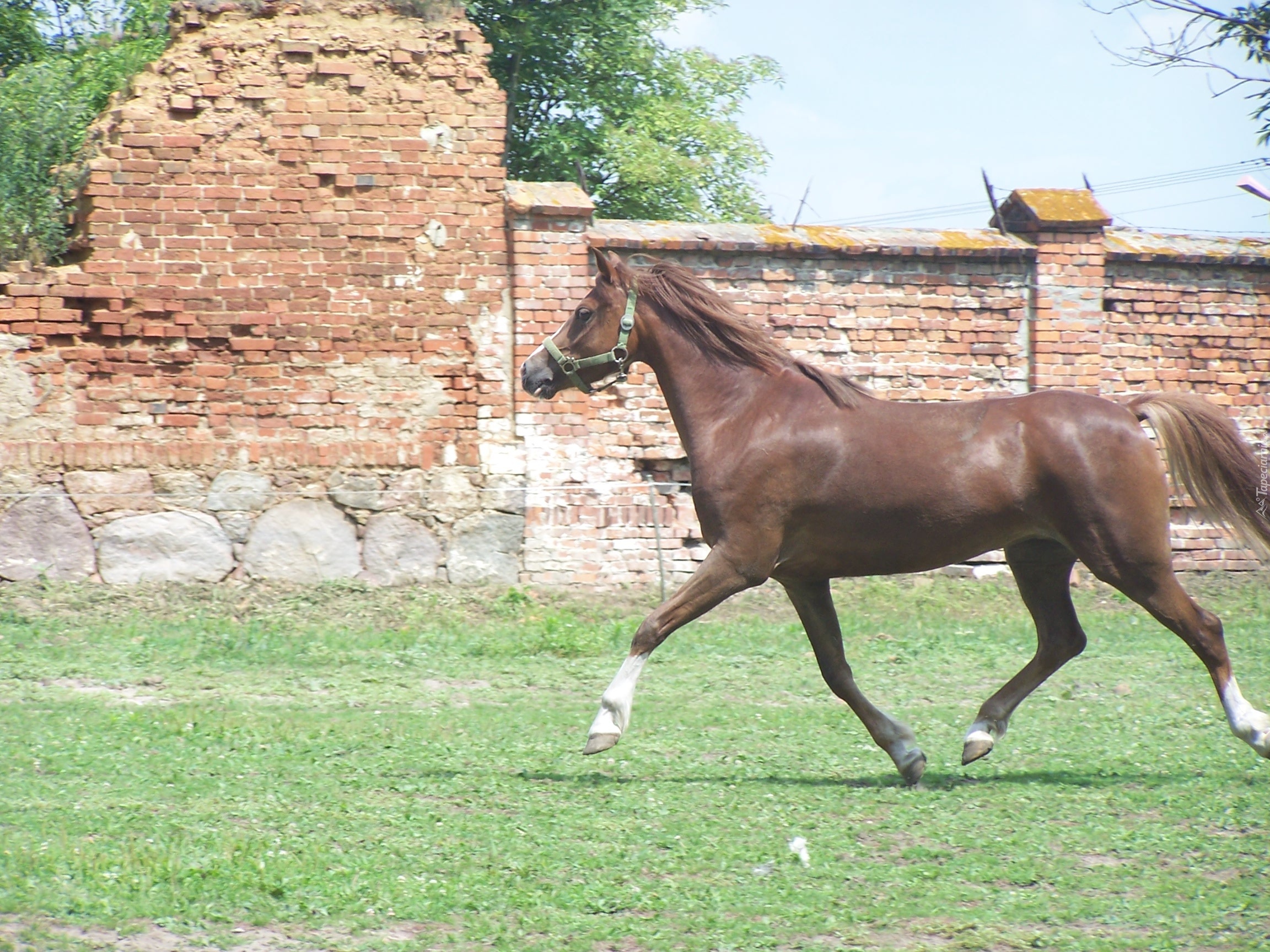 Edytor tapety: koń, mur, budowla, trawa, rośliny
