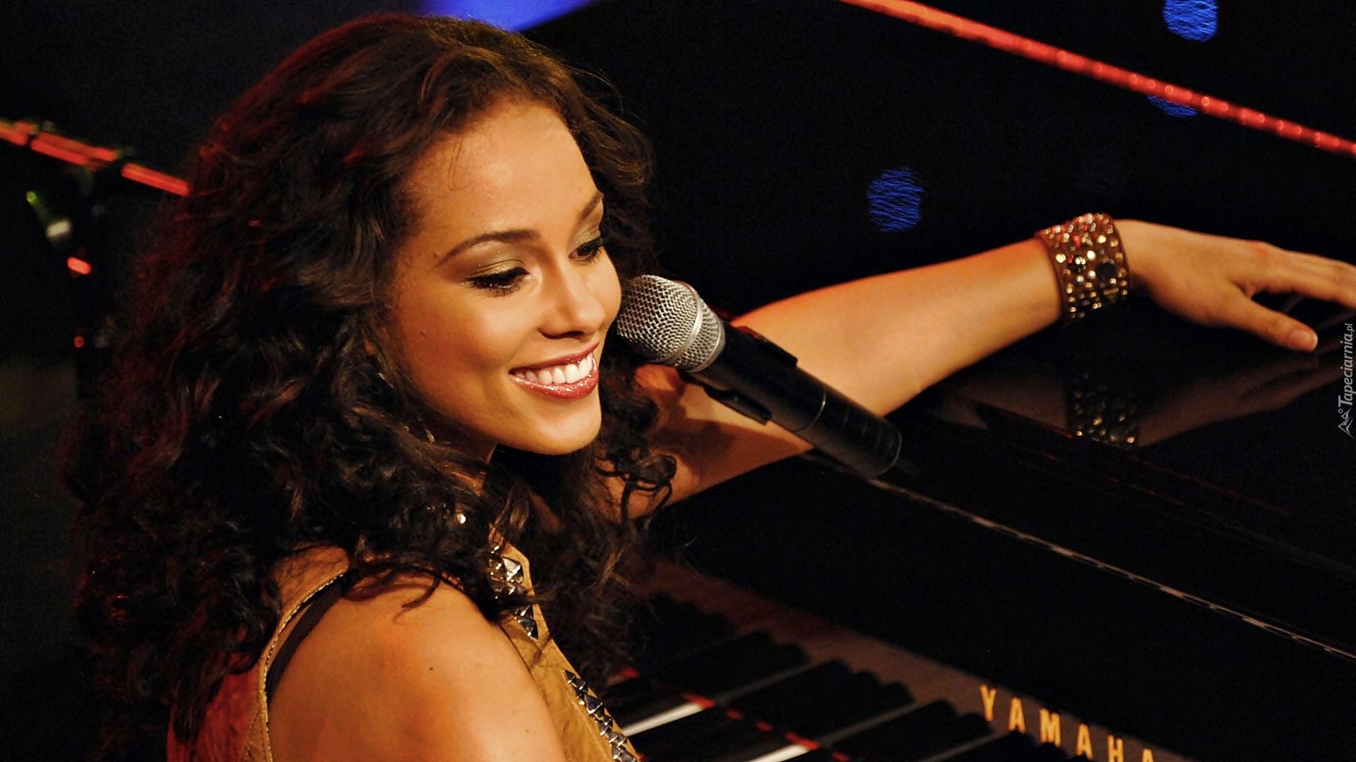 Edytor tapety: Alicia, Keys, Wokalistka, Pianino, Yamaha, Mikrofon