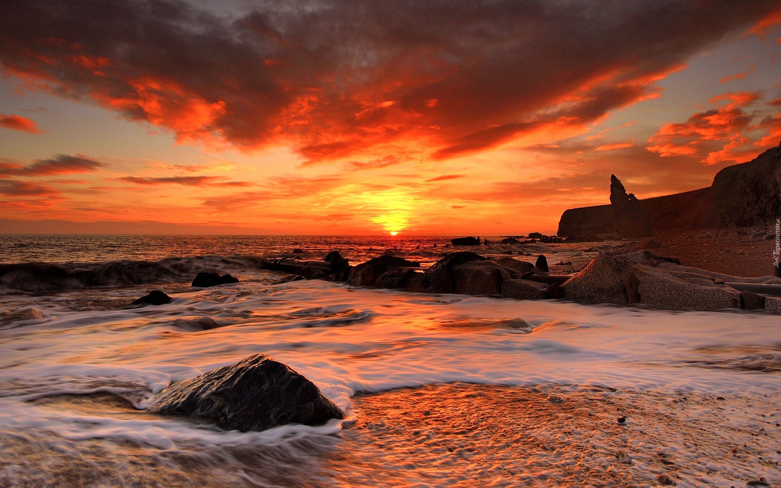 Edytor tapety: Chmury, Morze, Skały, Zachód, Słońca