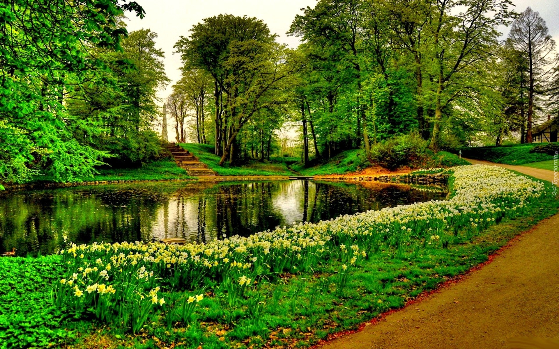 Edytor tapety: Park, Staw, Kwiaty