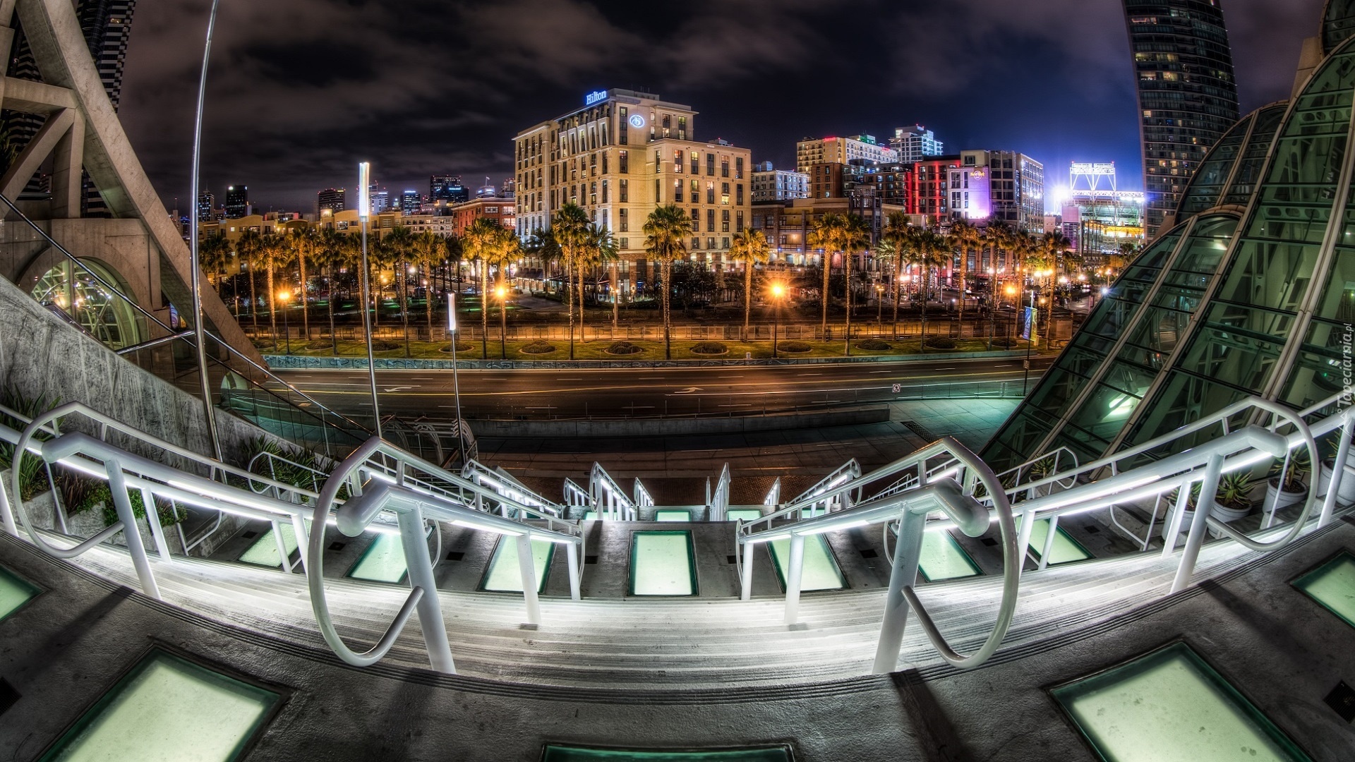 Edytor tapety: Miasto, Noc, Domy, Ulica, Schody