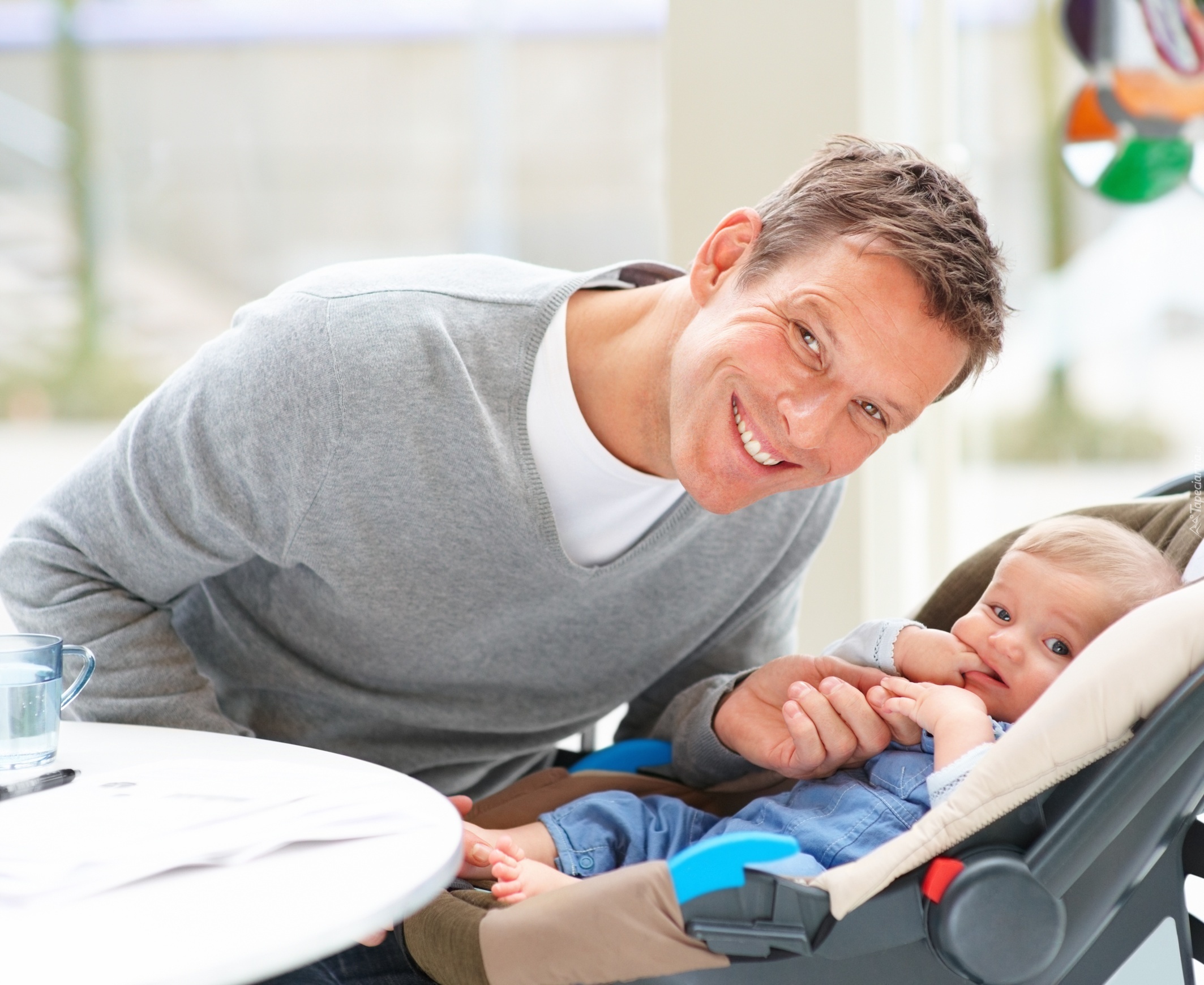 Edytor tapety: Ojciec, Dziecko, Stolik