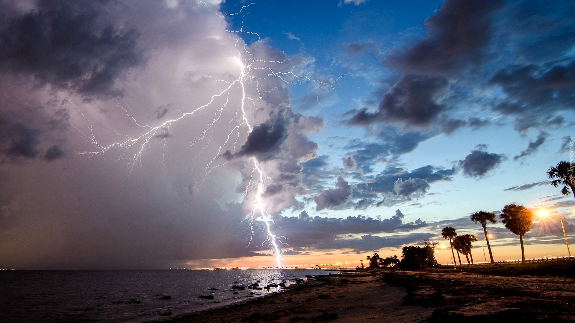 Edytor tapety: Morze, Burza, Pioruny, Promienie, Słońca