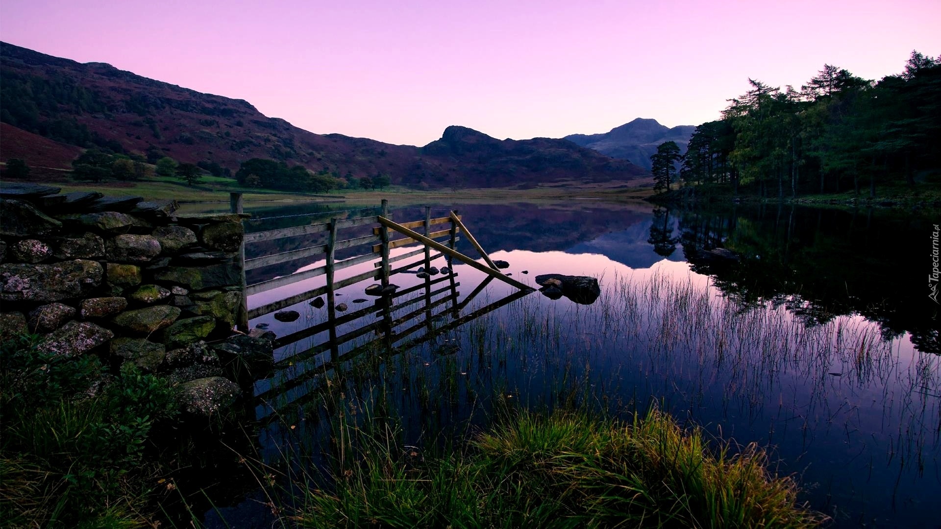 Edytor tapety: Góry, Zachód, Słońca, Jezioro, Odbicie