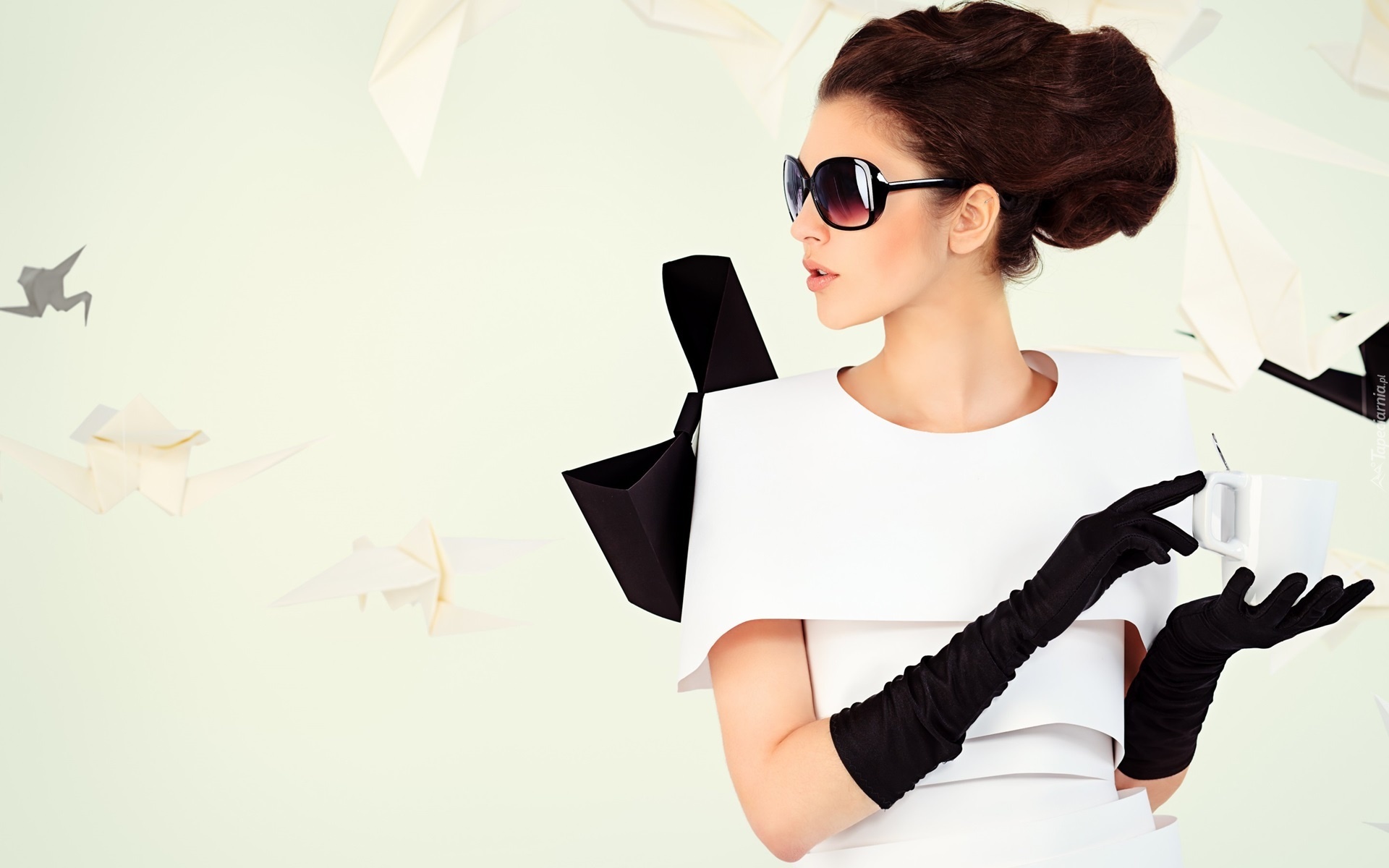 Edytor tapety: Kobieta, Moda i Styl, Okulary, Czerne, Rękawiczki