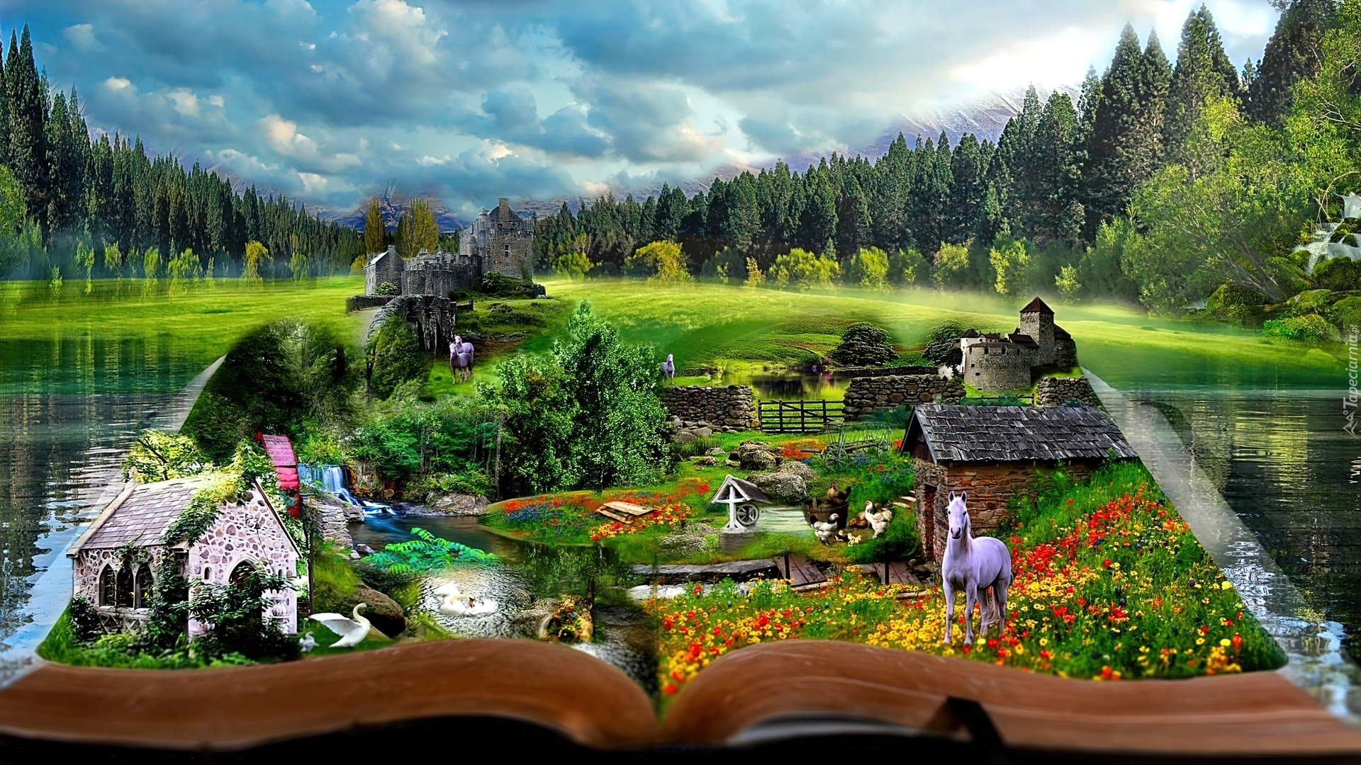 Edytor tapety: Jezioro, Las, Księga Wsi, Fantasy