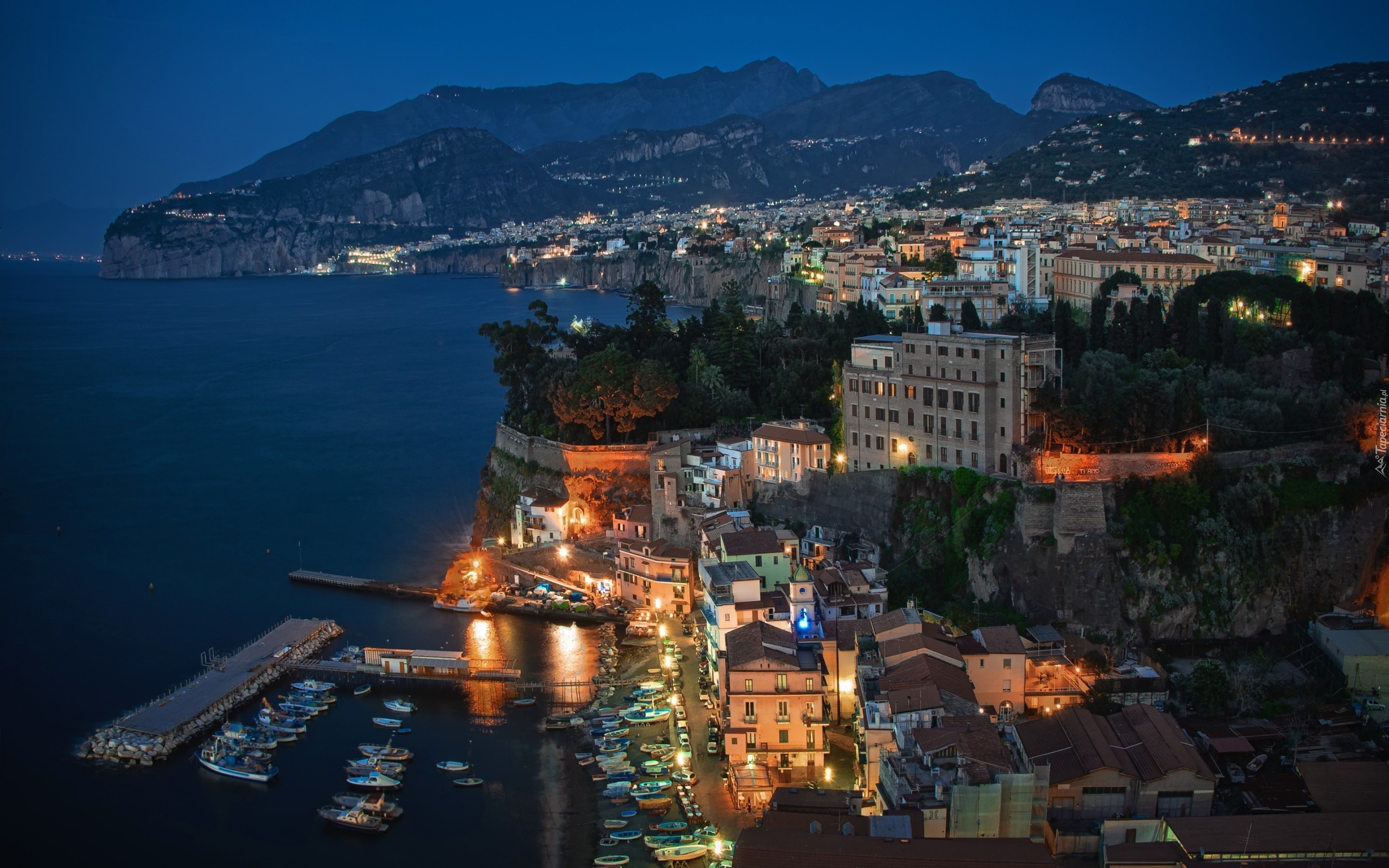 Edytor tapety: Wlochy, Miasto, Sorrento, Morze, Niebo, Miasto nocą, Port