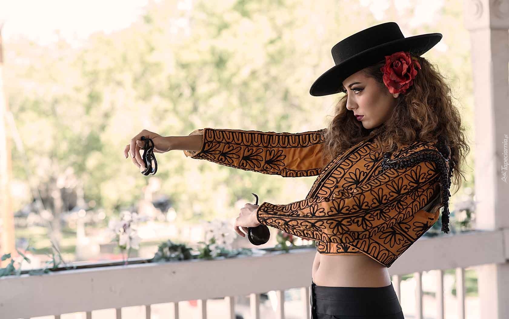 Edytor tapety: Brunetka, Moda, Styl, Kapelusz, Kastaniety