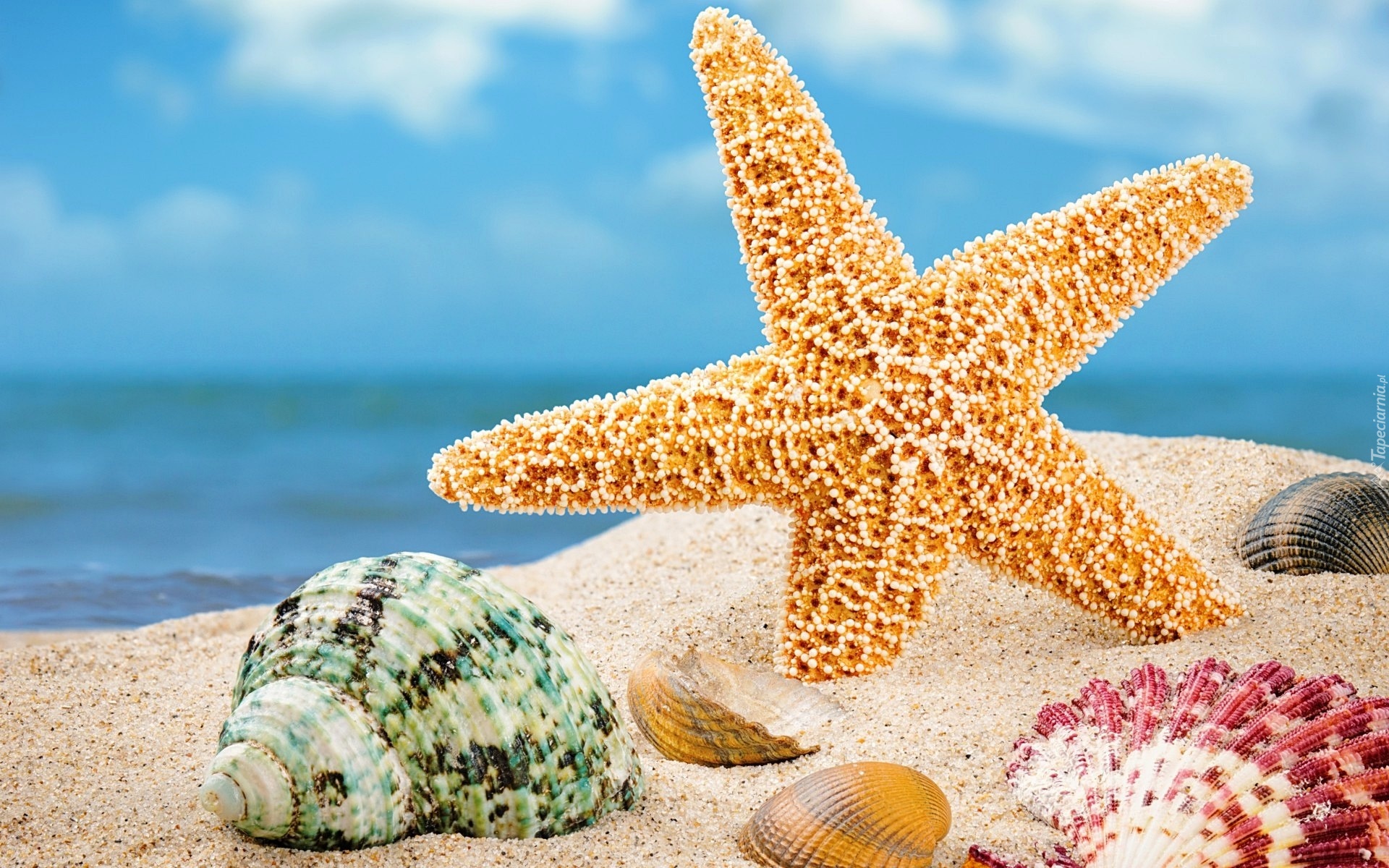 Edytor tapety: Muszle, Rozgwiazda, Morze, Piasek