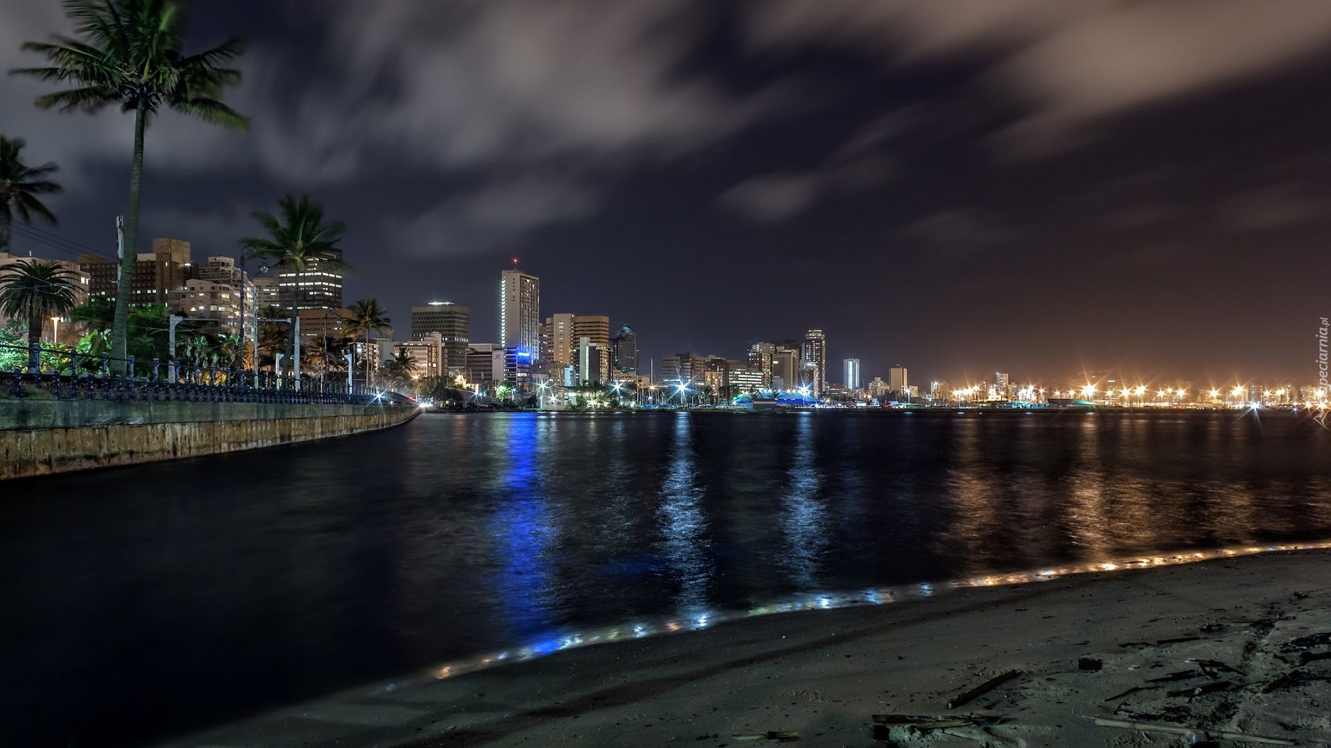 Edytor tapety: Republika Południowej Afryki, Durban, Miasto, Noc, Palmy, Ocean