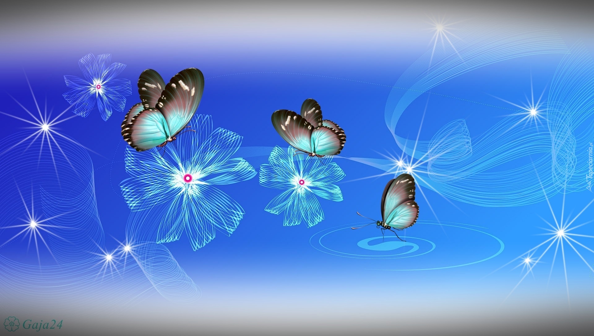 Edytor tapety: Motyle, Niebieskie Kwiaty, Grafika